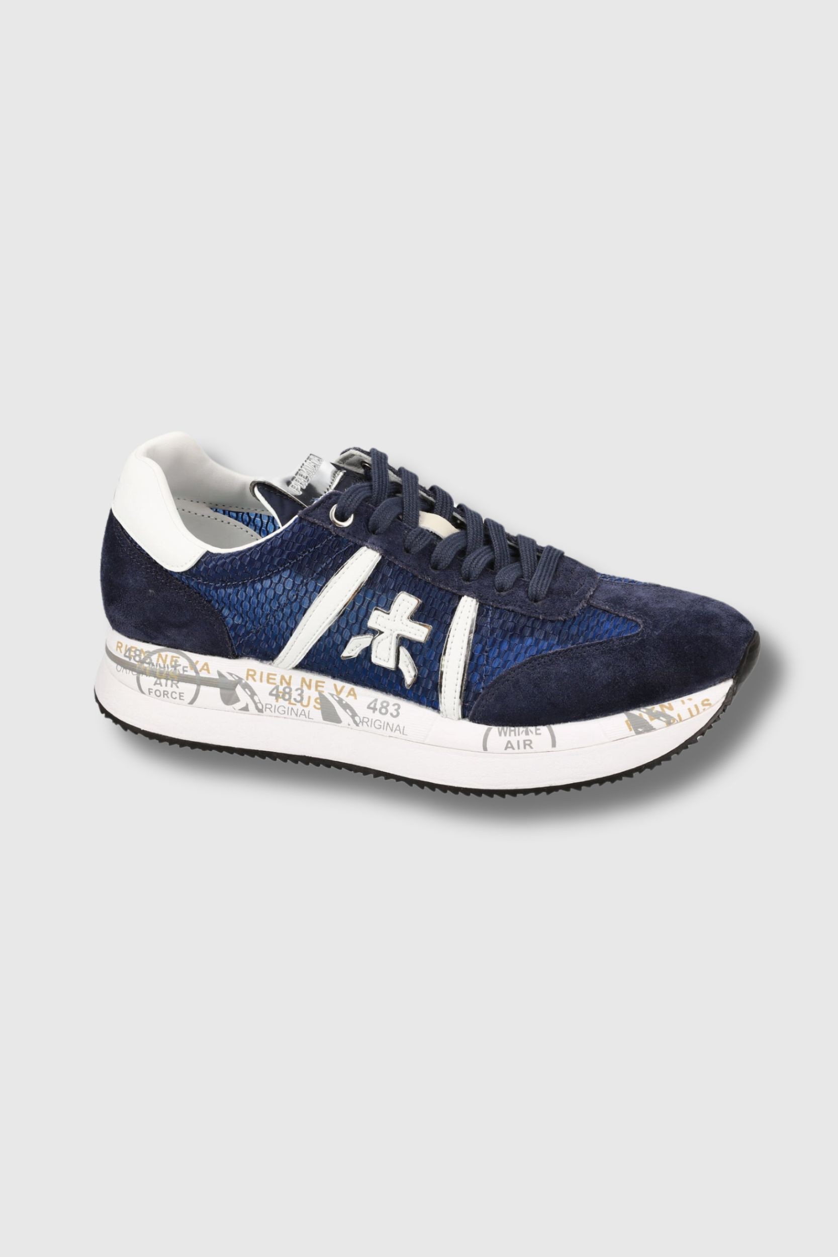 Ces baskets Conny 7368 bleues sont signées Premiata. Celles-ci présentent des détails inspiration "python".