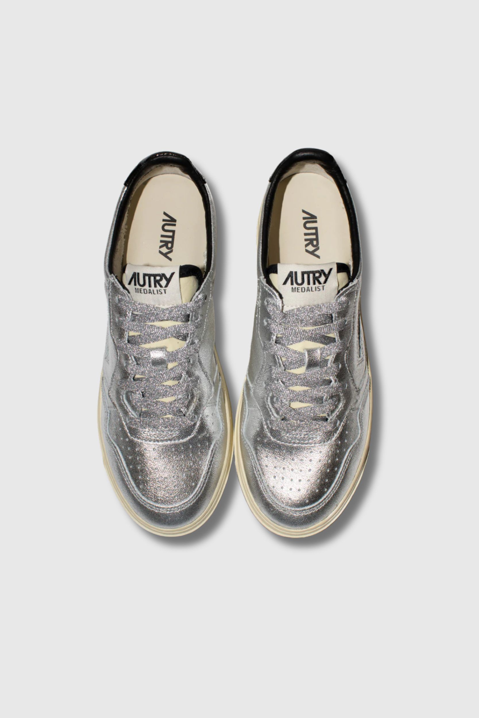 Ces baskets Medalist argenté et noire sont signées Autry. Celles-ci présentent le logo en cuir embossé sur le talon.