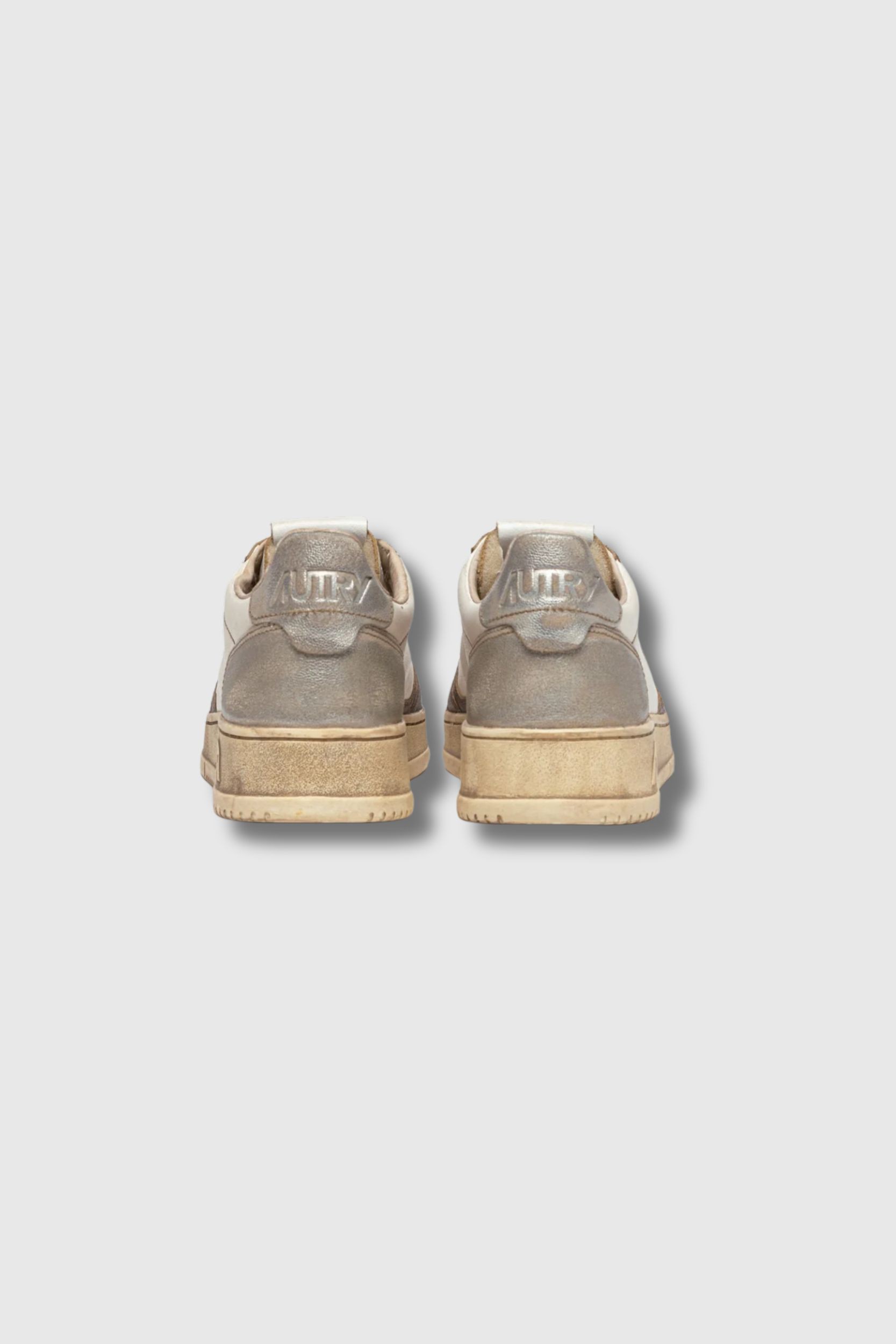 La basket Medalist Super Vintage choco et argent est signée Autry, celle-ci mêlant design tennis rétro et confort moderne. Confectionnée en cuir blanc souple à l’aspect vieilli, elle se distingue par ses empiècements en cuir laminé platine et argent, sublimés par des finitions artisanales uniques qui rendent chaque paire exclusive.
