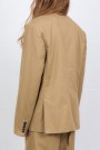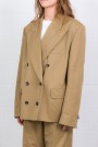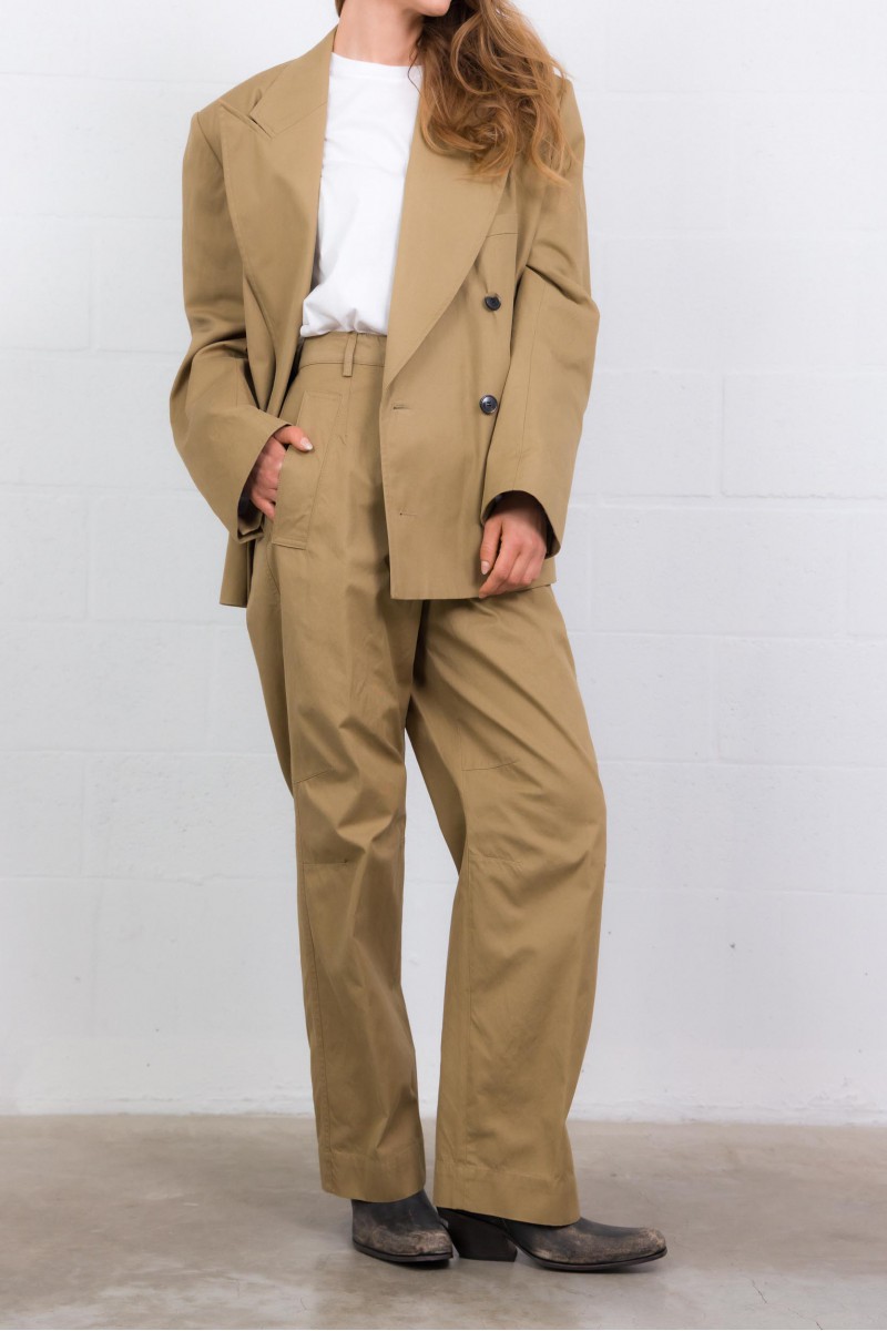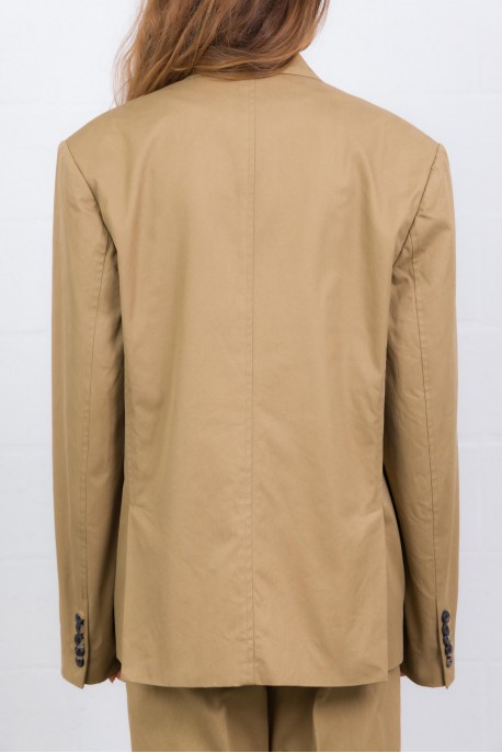 Ce blazer Bosea en twill camel est signé Dries Van Noten. De coupe oversize à double boutonnage, il présente des revers en pointe et des épaules structurées. Doté d’une poche poitrine et de poches à rabat, il est complété par des poignets à boutons ouverts et une fente au dos, pour une silhouette élégante et contemporaine.
