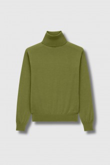 Vient ensuite la chaleur d’un cuir usé Prada contrasté par un col roulé orange en cachemire, laine et soie Saint Laurent, d'un sac bowling en daim vieilli et de la paire d'escarpins du show Prada AW25.