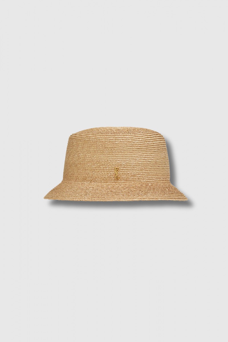 Ce chapeau en paille signé Saint Laurent adopte la forme d’un bob aux bords courts, rehaussé d’un pin Cassandre doré emblématique. Doté d’un ruban en gros-grain à l’intérieur, il allie élégance discrète et esprit estival, parfait pour compléter une silhouette avec une touche chic et contemporaine.