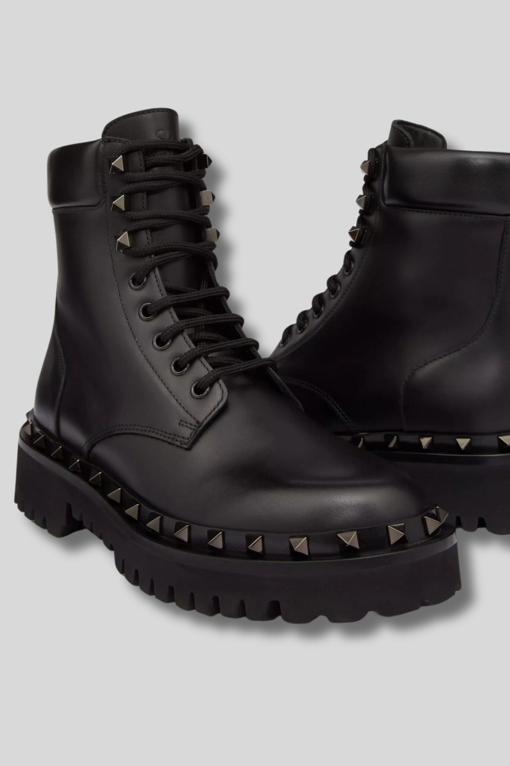 Ces combat boots Rockstuds noires sont signées Valentino Garavani. Celles-ci sont détaillées de clous ton-sur-ton sur le pourtour de la chaussure.