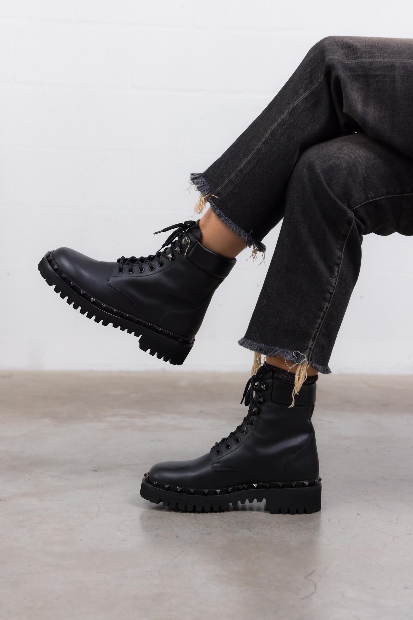 Combat boots Rockstuds en cuir noir