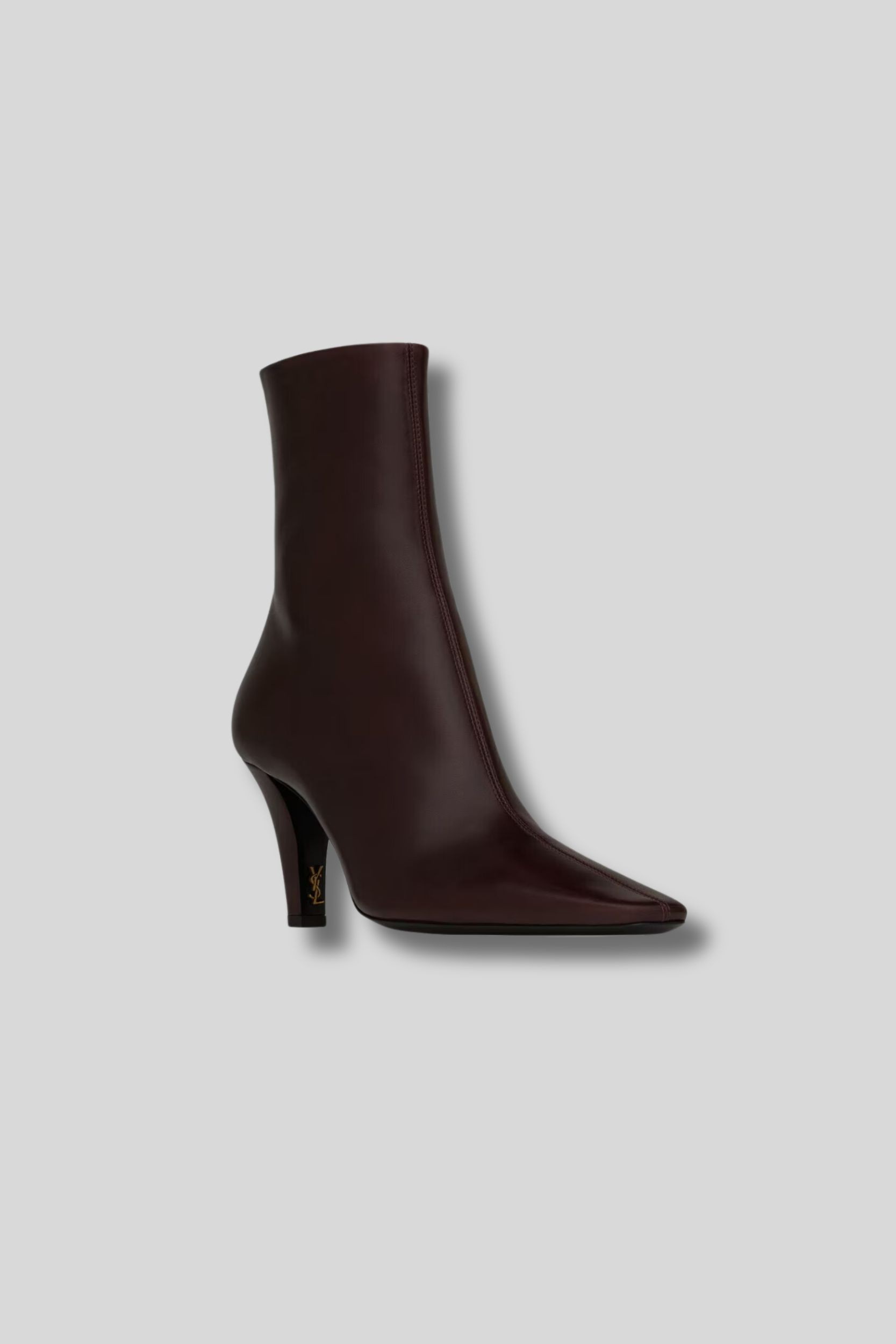 Ces boots Jill en cuir lisse marron glacé sont signées Saint Laurent. Celles-ci présentent un bout pointu carré et le Cassandre doré sur l'intérieur du talon. Cette pièce est munie d'une fermeture zippée sur le côté intérieur.