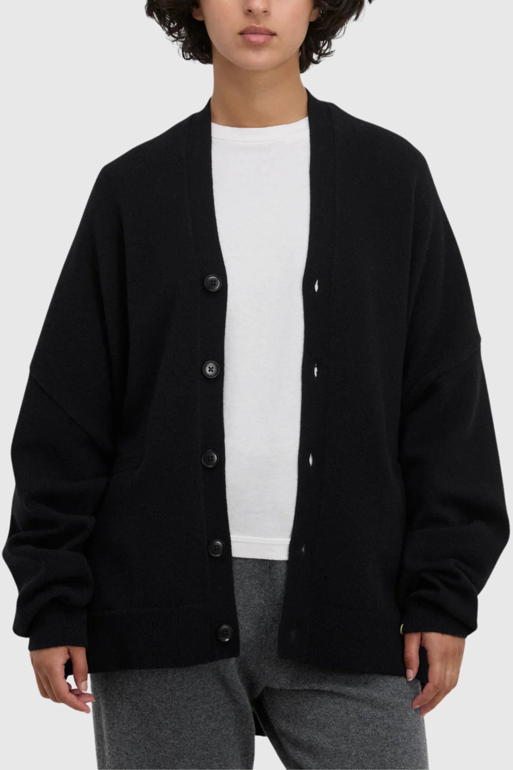 Gilet en cachemire à la coupe ample, doté de deux poches plaquées sur le devant et d’une épaule tombante.
