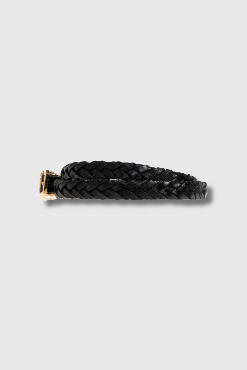 Cette ceinture triple en cuir noir signée Etro se distingue par son design enveloppant et son artisanat raffiné. Confectionnée en cuir tressé brun foncé, elle se porte en double tour autour de la taille pour structurer la silhouette avec élégance. Dotée d’une boucle en métal doré à fermeture ajustable, elle apporte une touche sophistiquée et chaleureuse, idéale pour sublimer aussi bien une robe fluide qu’un pantalon taille haute.