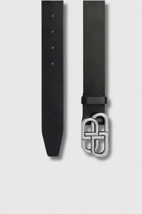 La Ceinture noire à logo BB argenté signée Balenciaga incarne une élégance contemporaine aux lignes affirmées. Confectionnée en cuir de veau lisse, elle se distingue par son logo interlocked BB en finition argent vieilli, signature audacieuse et emblématique de la Maison.