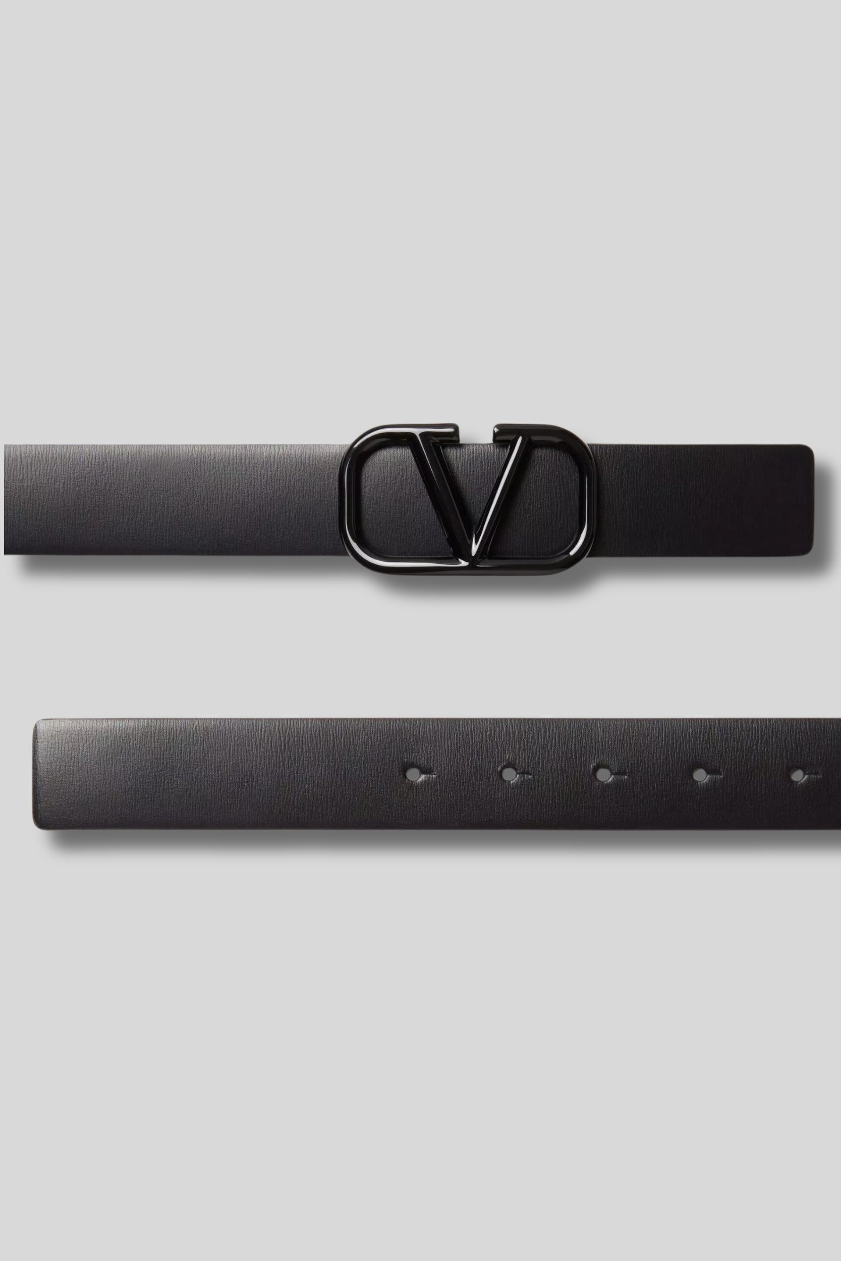 Cette ceinture en cuir de veau brillant noir est signée Valentino Garavani. Elle présente une boucle VLogo Signature émaillée ton sur ton.