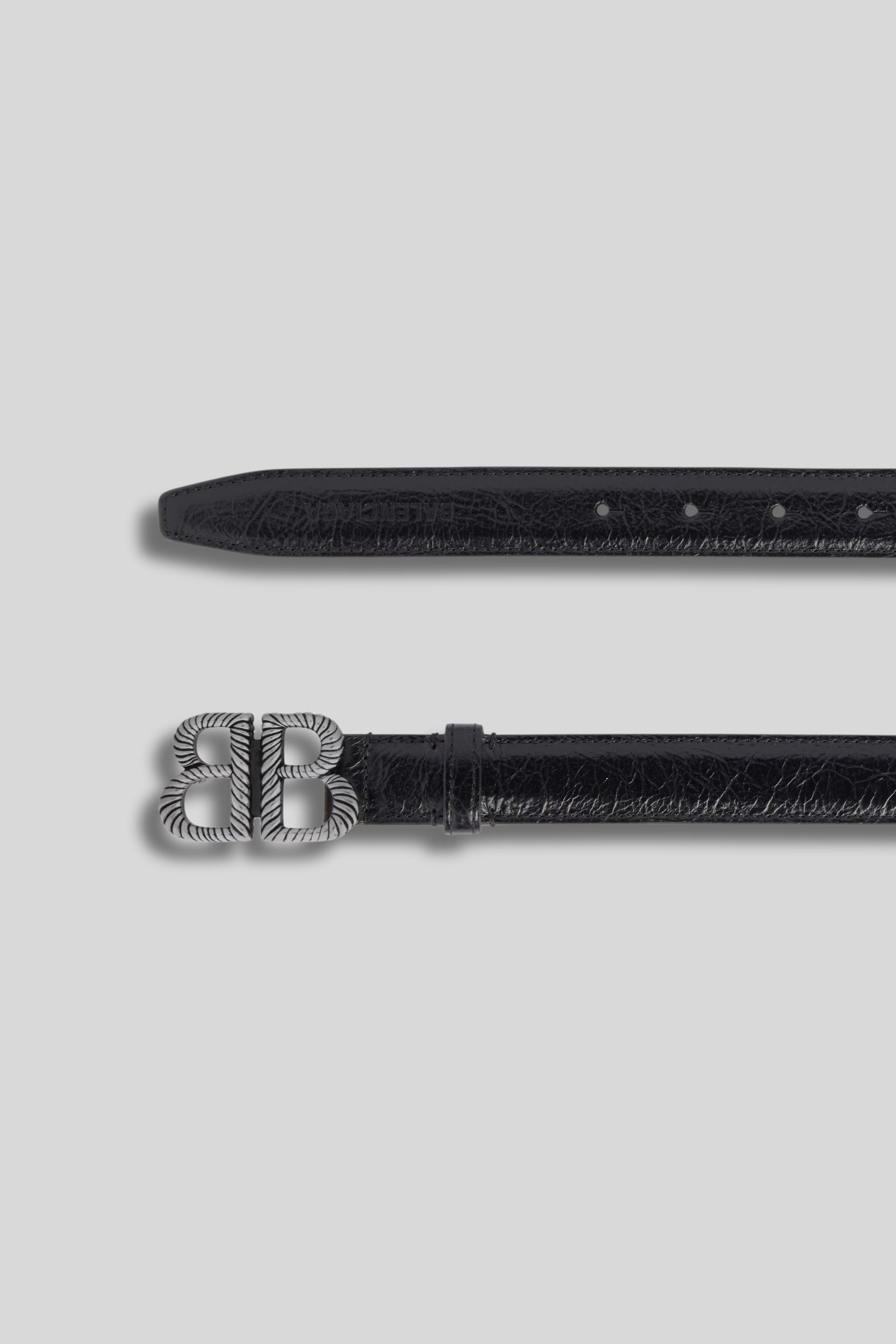 Cette ceinture Monaco Twist en cuir de veau Arena noir est signée Balenciaga. Elle est ornée d'une boucle en forme de "B" avec des détails torsadés et des finitions en argent vieilli.