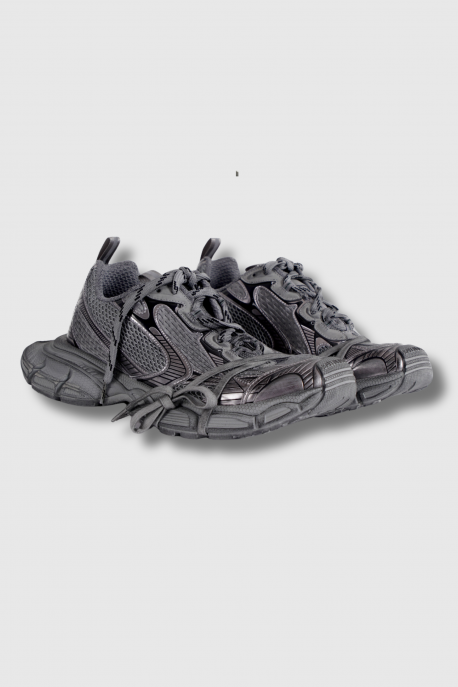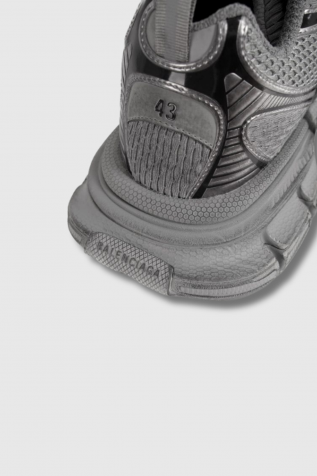 Les sneakers 3XL se déclinent en mesh gris et noir avec un effet usé signature. Détails logo Balenciaga sur l’avant et l’arrière, taille embossée sur la tige et le talon. Marquage 3XL en relief sur la languette avec élément réfléchissant, et tirette arrière avec finition réfléchissante.