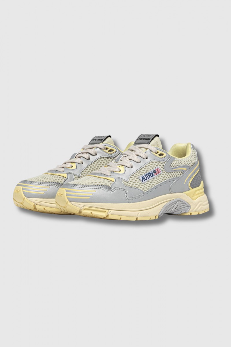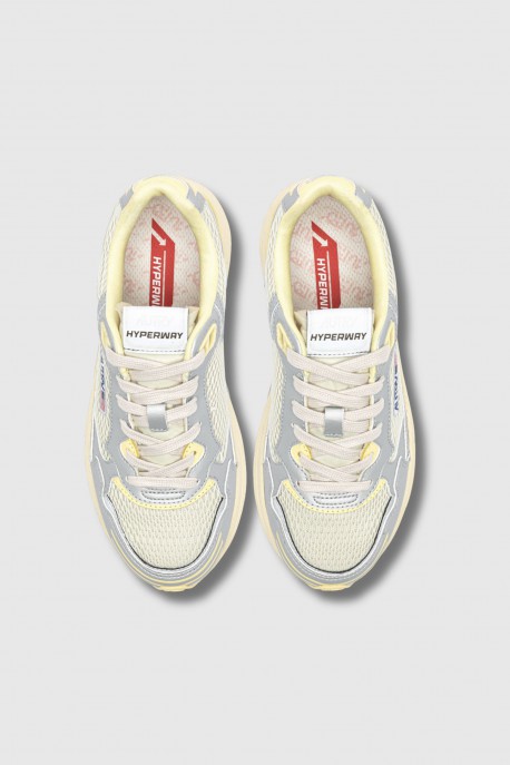 Ces baskets Hyperway en mesh et daim argenté/jaune signées Autry combinent style running et esthétique urbaine. La tige associe une maille légère et respirante à des empiècements en daim pour un confort optimal et une touche sophistiquée. La semelle intègre la technologie Action Cush pour un amorti supérieur et une expérience de marche agréable. La languette en nylon, le contrefort arrière en cuir gaufré, l’étiquette jacquard et le logo latéral soulignent l’authenticité du modèle. Les finitions incluent une pointe en mesh, des lacets plats en coton, un col rembourré en mesh et une doublure en coton éponge.