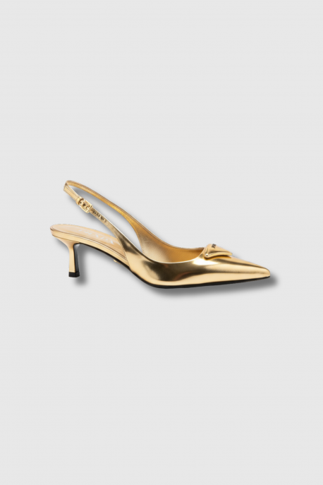 Ces escarpins Prada subliment la silhouette avec leur allure sophistiquée et leur finition dorée métallisée éclatante. Confectionnés en cuir métallisé, ils présentent une ligne épurée, un bout pointu et un talon fin qui allonge la jambe avec élégance. Véritable pièce statement, ce modèle illumine aussi bien une tenue de soirée qu’un look plus minimal, apportant une touche de luxe moderne et intemporel.