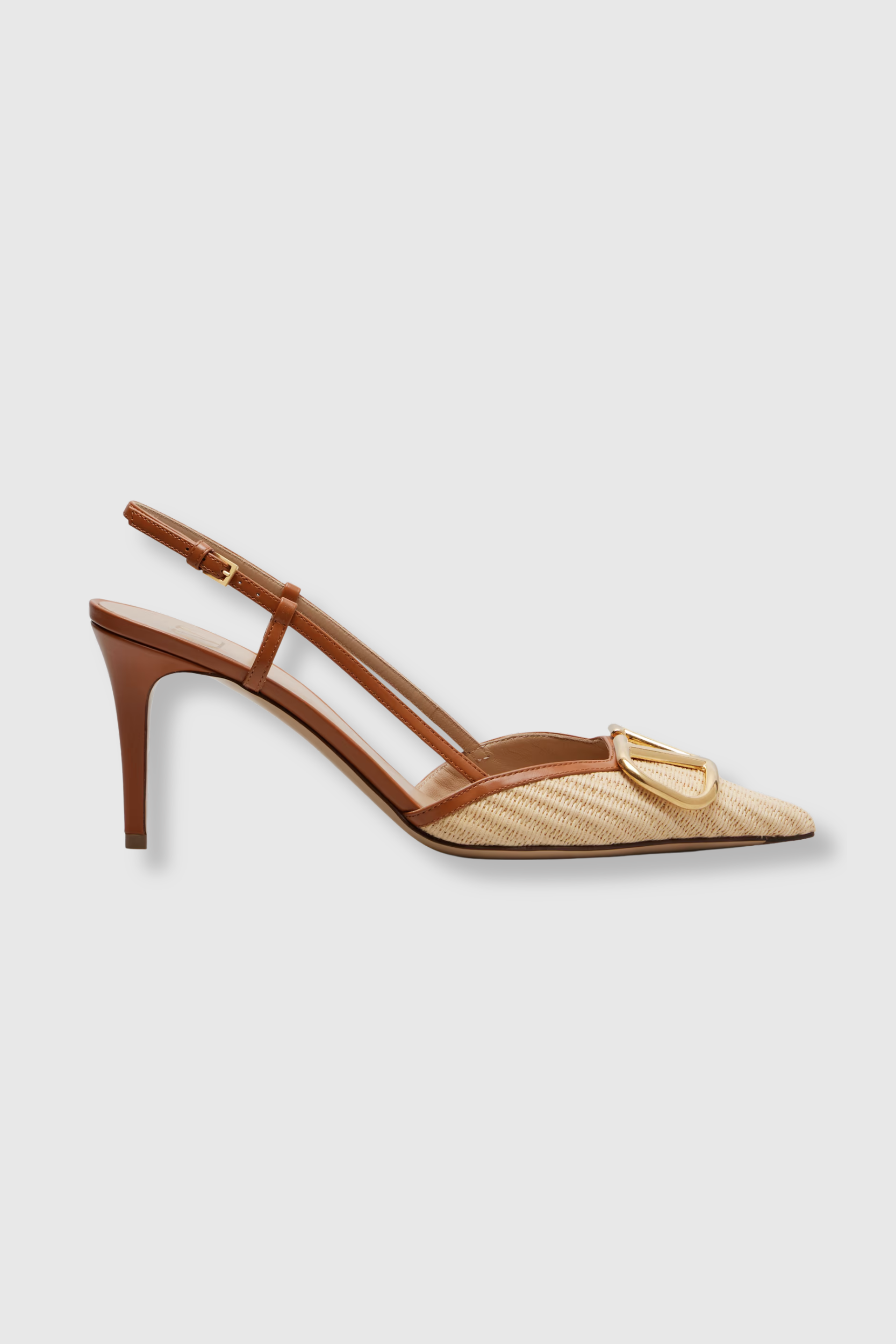 Ces escarpins Valentino Garavani associent élégance et esprit estival. Confectionnés en raphia tressé naturel, ils sont rehaussés de brides fines en cuir camel et d’une boucle dorée emblématique à l’avant. Leur bout pointu allonge la silhouette tandis que le talon fin apporte une allure féminine et équilibrée. La bride arrière ajustable assure un maintien confortable. Un modèle raffiné, parfait pour sublimer une tenue de jour comme de soirée.