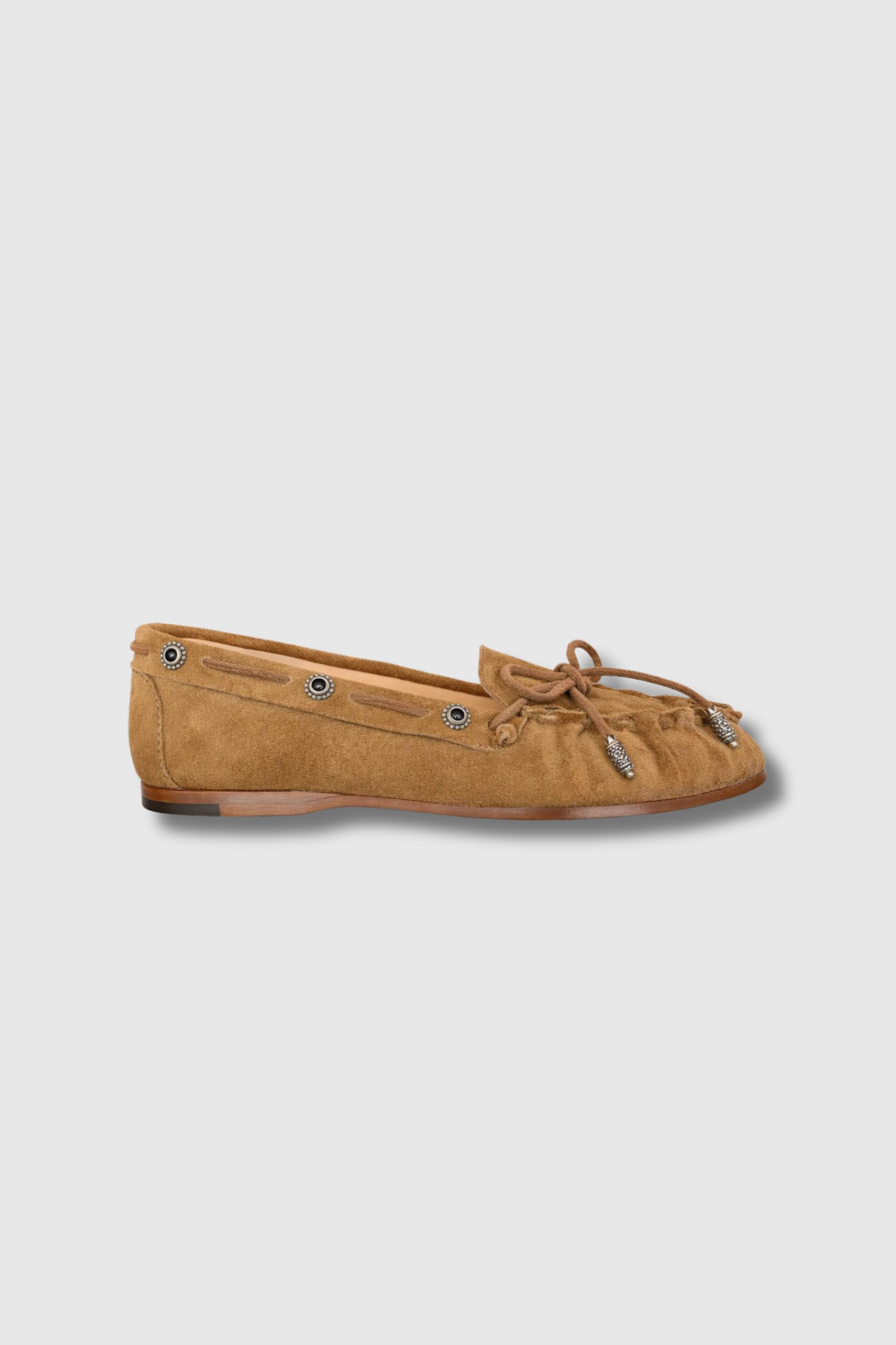 Mocassins indiens et pierres noires en daim camel