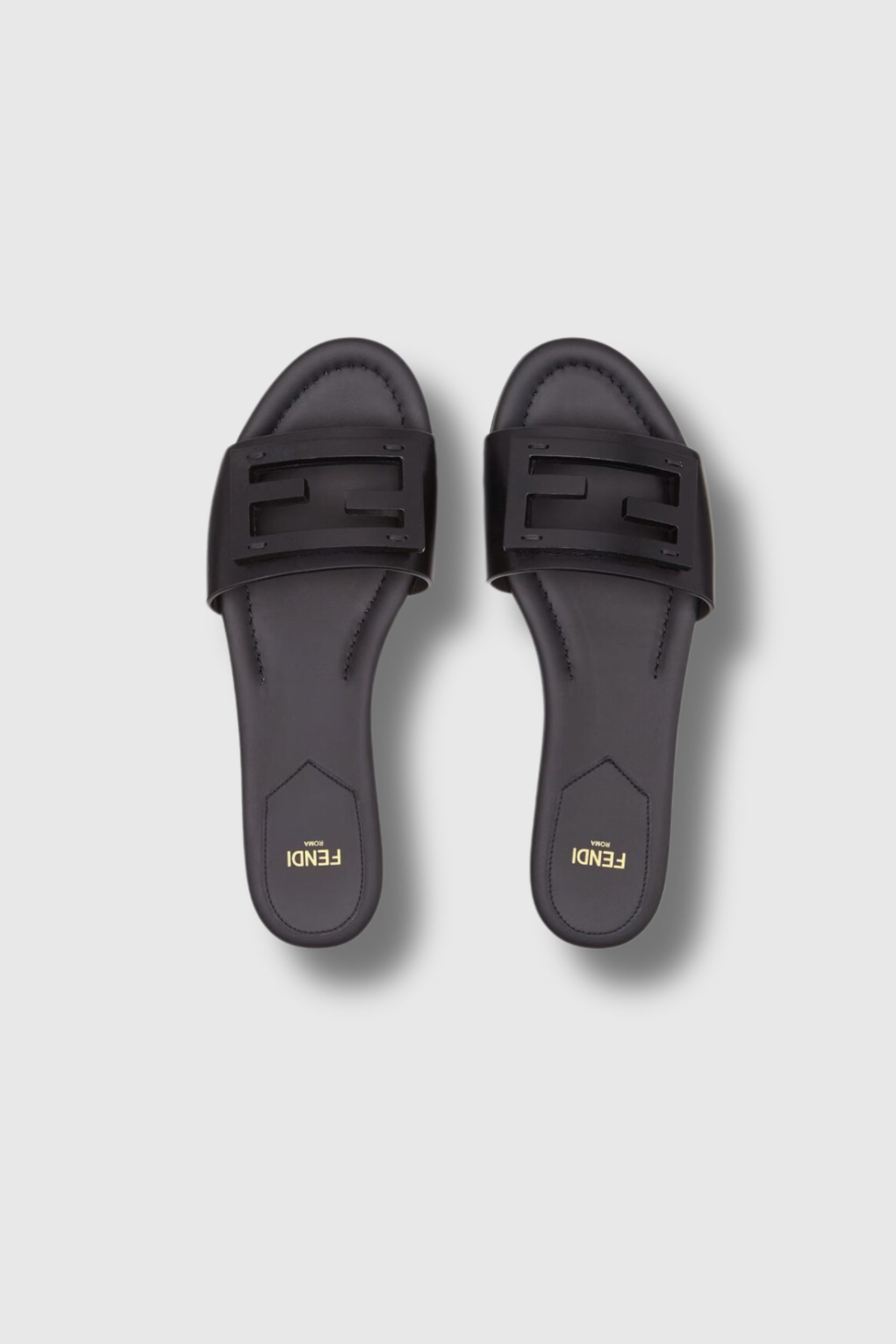 Ces sandales Baguette en cuir noir sont signées Fendi. Celles-ci présentent une large bride et sont détaillées du motif FF ton-sur-ton.
