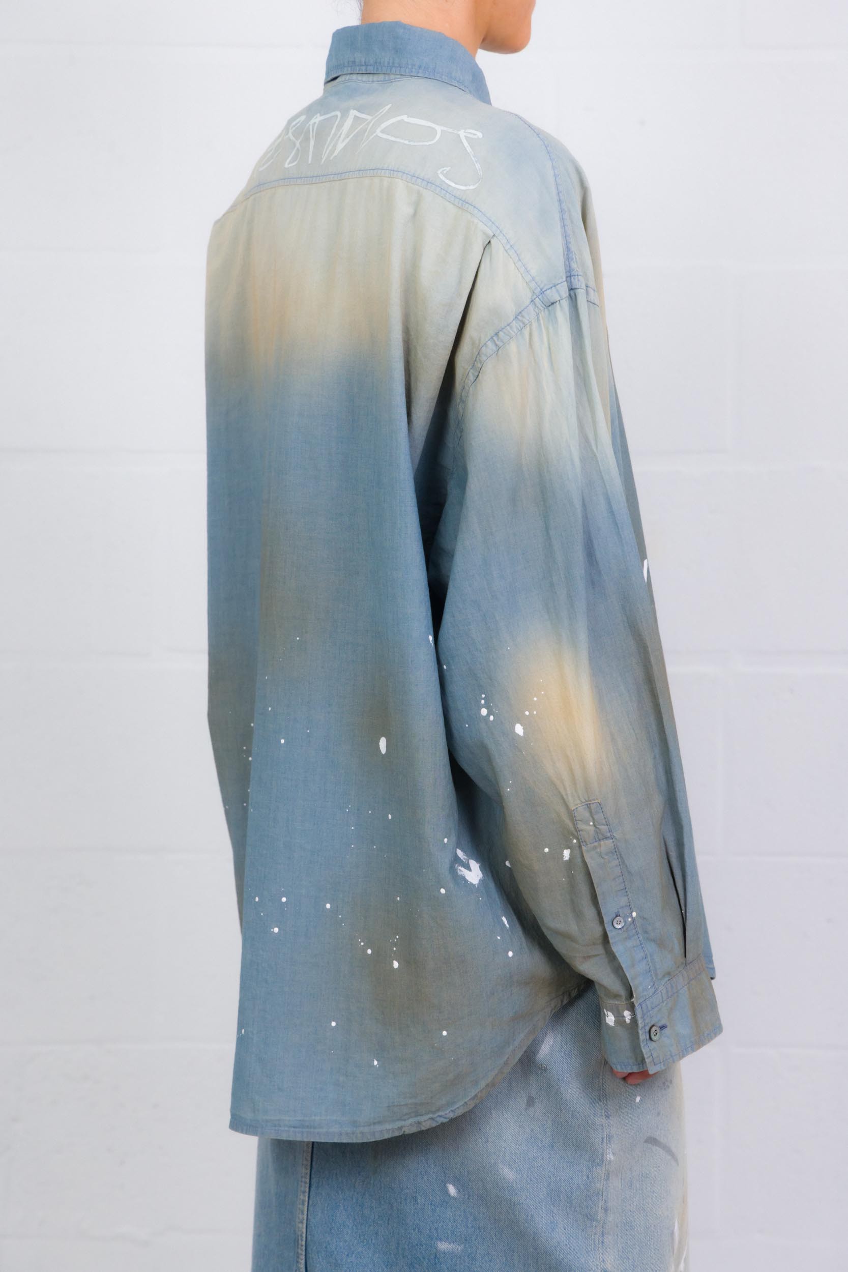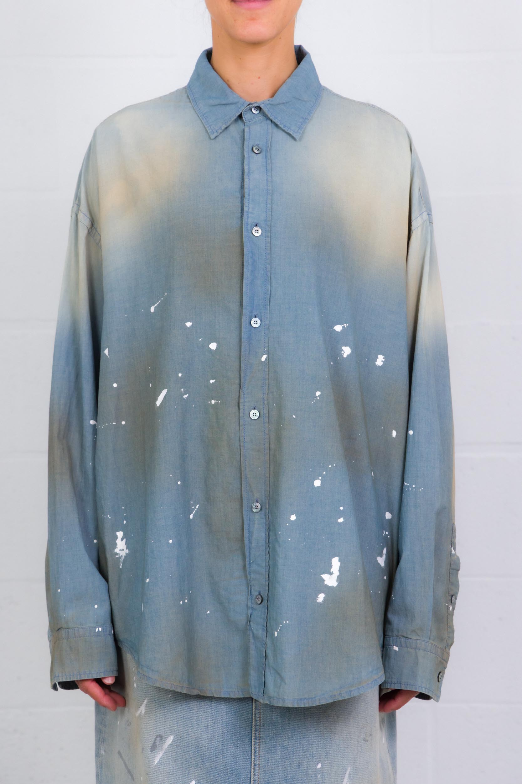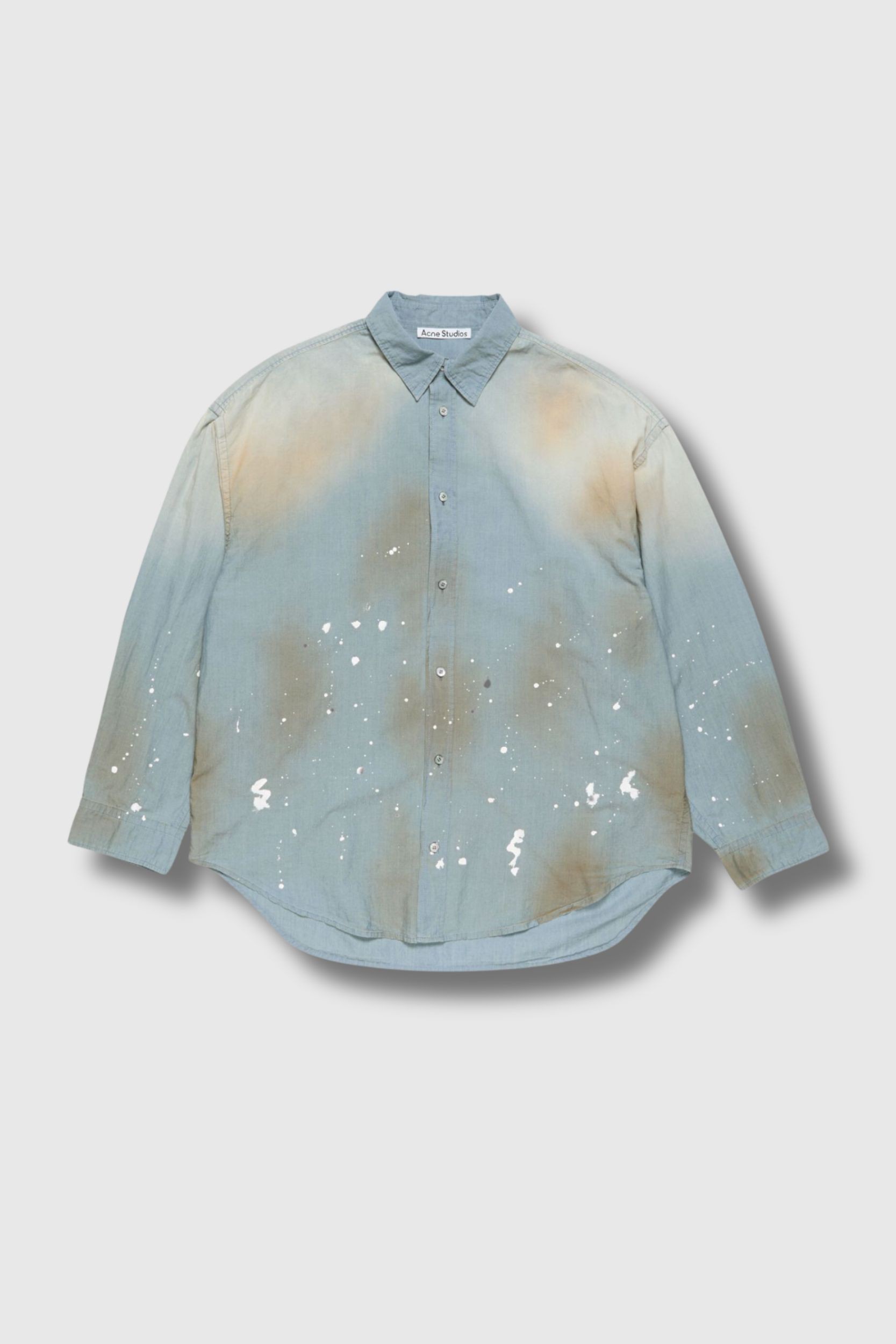 Cette chemise boutonnée Light Blue est signée Acne Studios. Celle-ci se distingue par sa finition enduite et ses éclaboussures peintes, lui conférant une allure artistique et contemporaine. Sa coupe ample et sa longueur sous les hanches assurent un porté décontracté, tandis que le logo Acne Studios apposé dans le dos signe la pièce avec caractère.