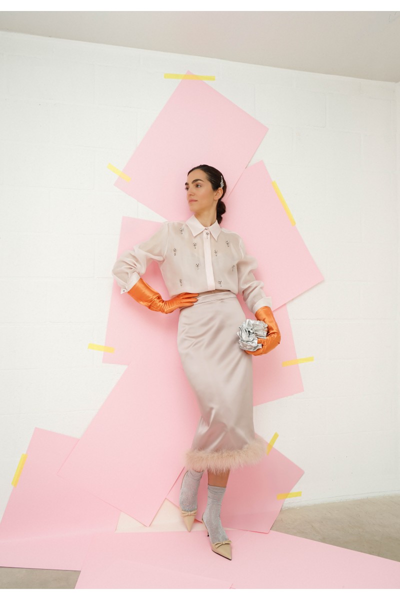 Chemise Agi bijoux en soie rose poudré