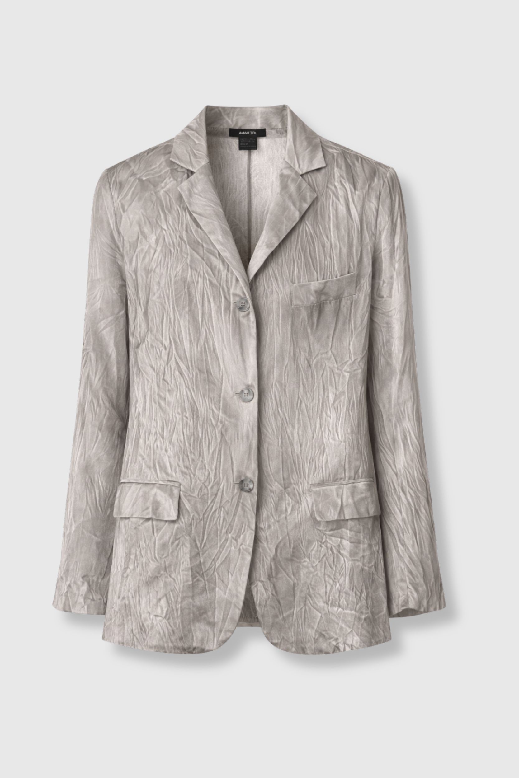 Cette veste imprimée Flaubert en soie argentée signée Avant Toi allie modernité et sophistication. Confectionnée en soie légère au délicat reflet argenté, elle présente une coupe droite élégante et un col à revers classique. La fermeture simple par bouton renforce son style épuré, tandis que la poche plaquée sur la poitrine et les poches à rabat sur le devant apportent fonctionnalité et équilibre à la silhouette. Une pièce raffinée, idéale pour rehausser une tenue avec subtilité et éclat.