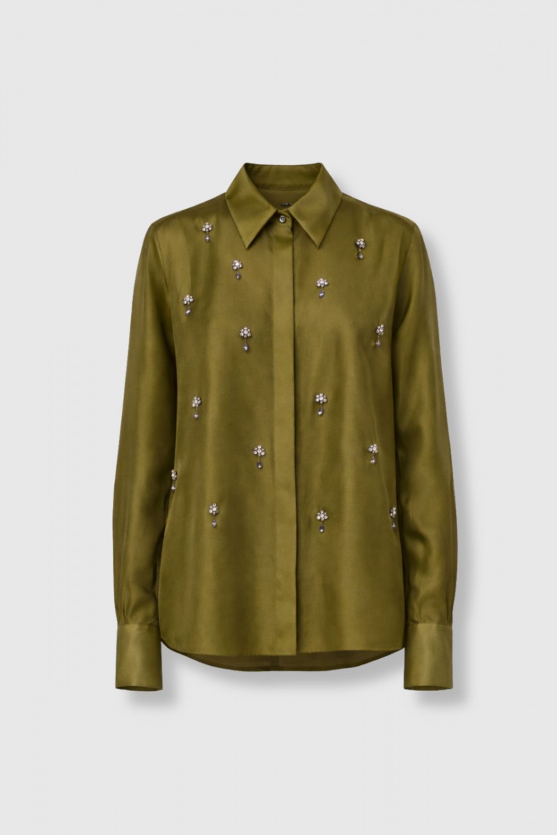 Chemise Agi bijoux en soie vert