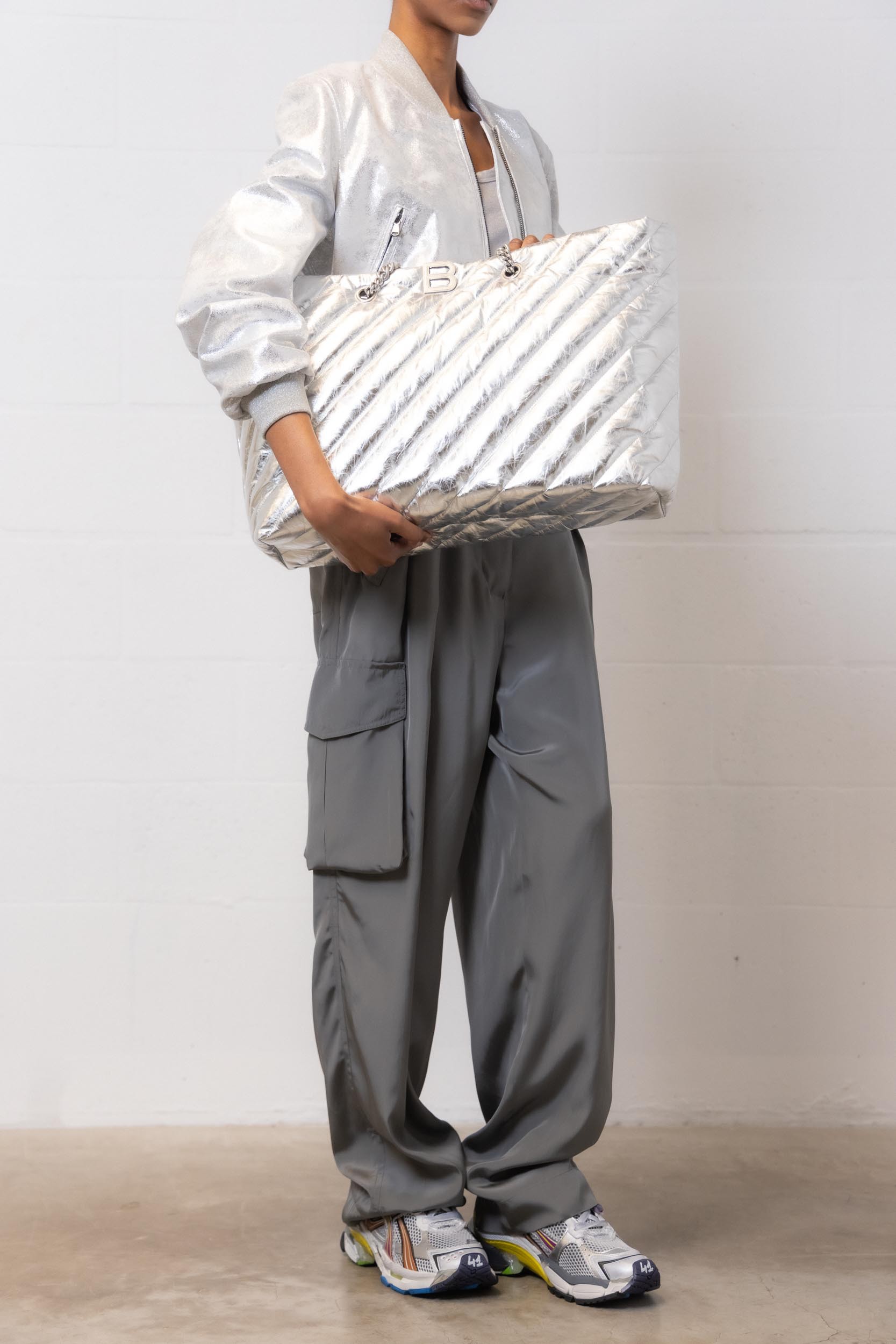 Bomber Diana en cuir vintage Paper argenté