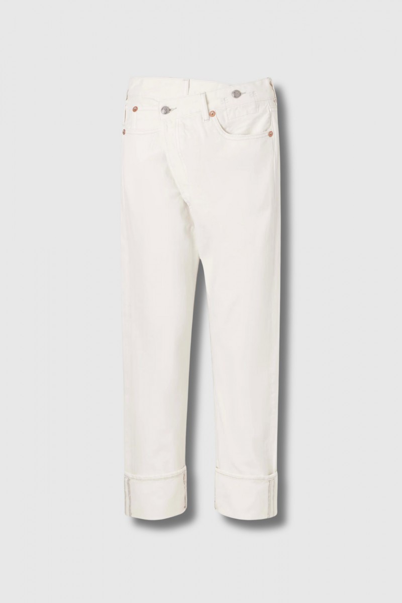 Ce jean Cuffed Crossover Cement White est signé R13. Inspiré de l’esthétique punk de la marque, il présente une coupe décontractée avec des ourlets retroussés. Son design associe détails déstructurés et finitions soignées, offrant une silhouette moderne et audacieuse.