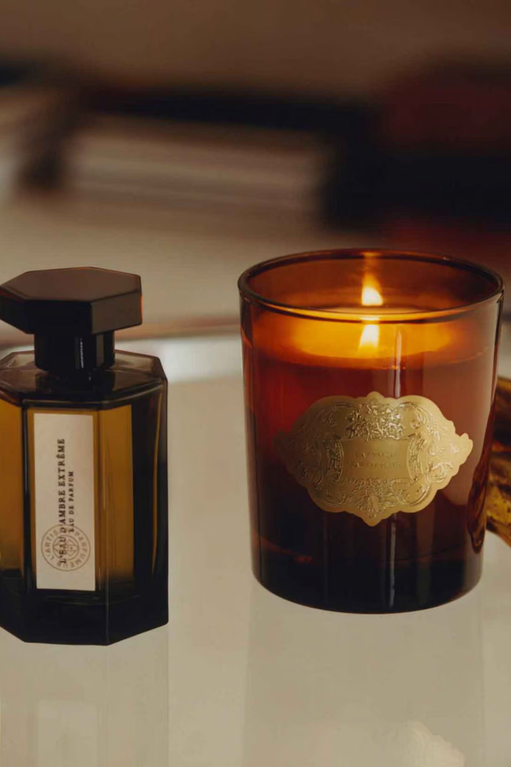 Grâce à l'accord Ambre original de L’Artisan Parfumeur, votre bougie diffuse un parfum subtil et chaleureux. Fabriquée en France, dans son écrin de verre brun orné de son blason doré, la bougie L'Ambre apporte une touche de raffinement à votre décor.