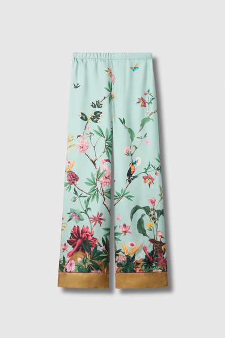 Ce pantalon large en twill de soie bleu est signé La Double J. Confectionné dans une soie twill de Como, il offre une texture douce et fluide, idéale pour un confort absolu. Sa coupe droite et sa taille élastique s’adaptent à toutes les silhouettes, tandis que le piping contrasté ajoute une touche sophistiquée.