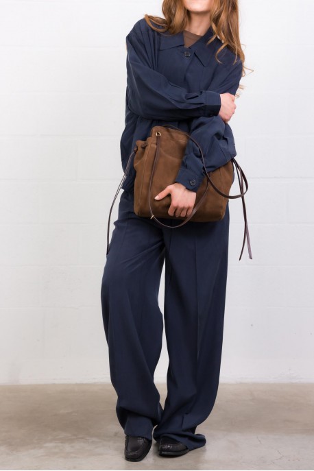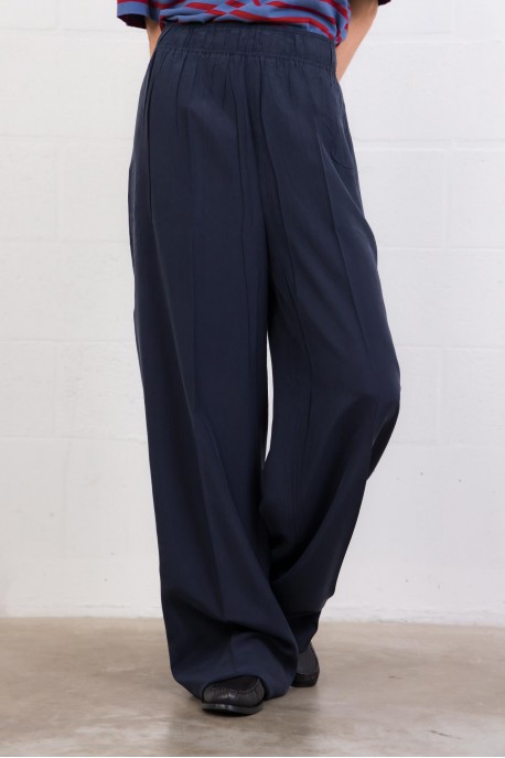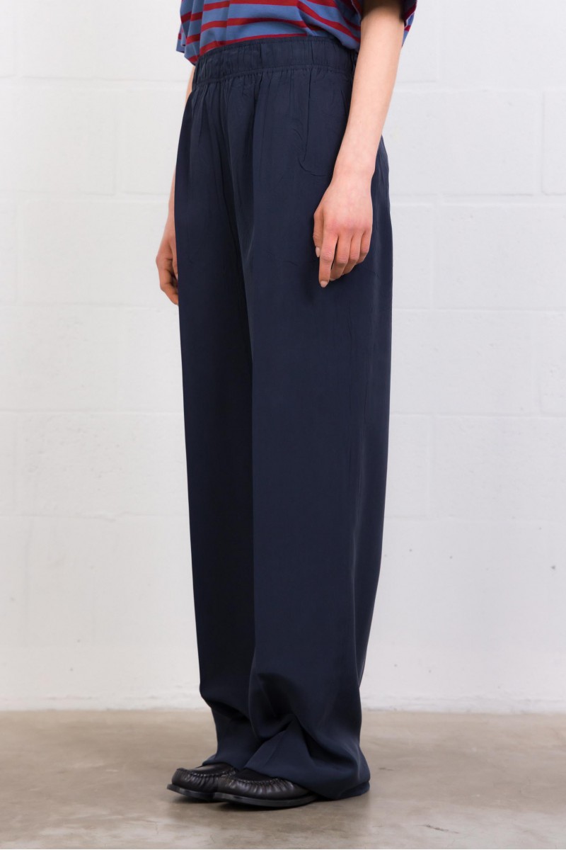 Pantalon en soie fluide marine