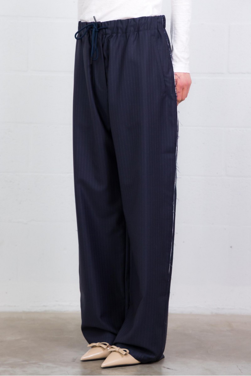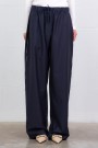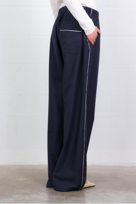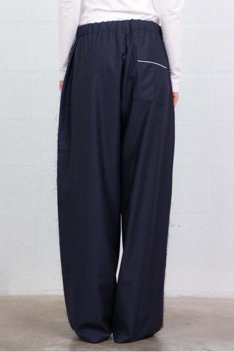 Ce pantalon Pieter bleu marine est signé Façon Jacqmin. Celui-ci présente une coupe ample, des poches en biais et un élastique à la taille.