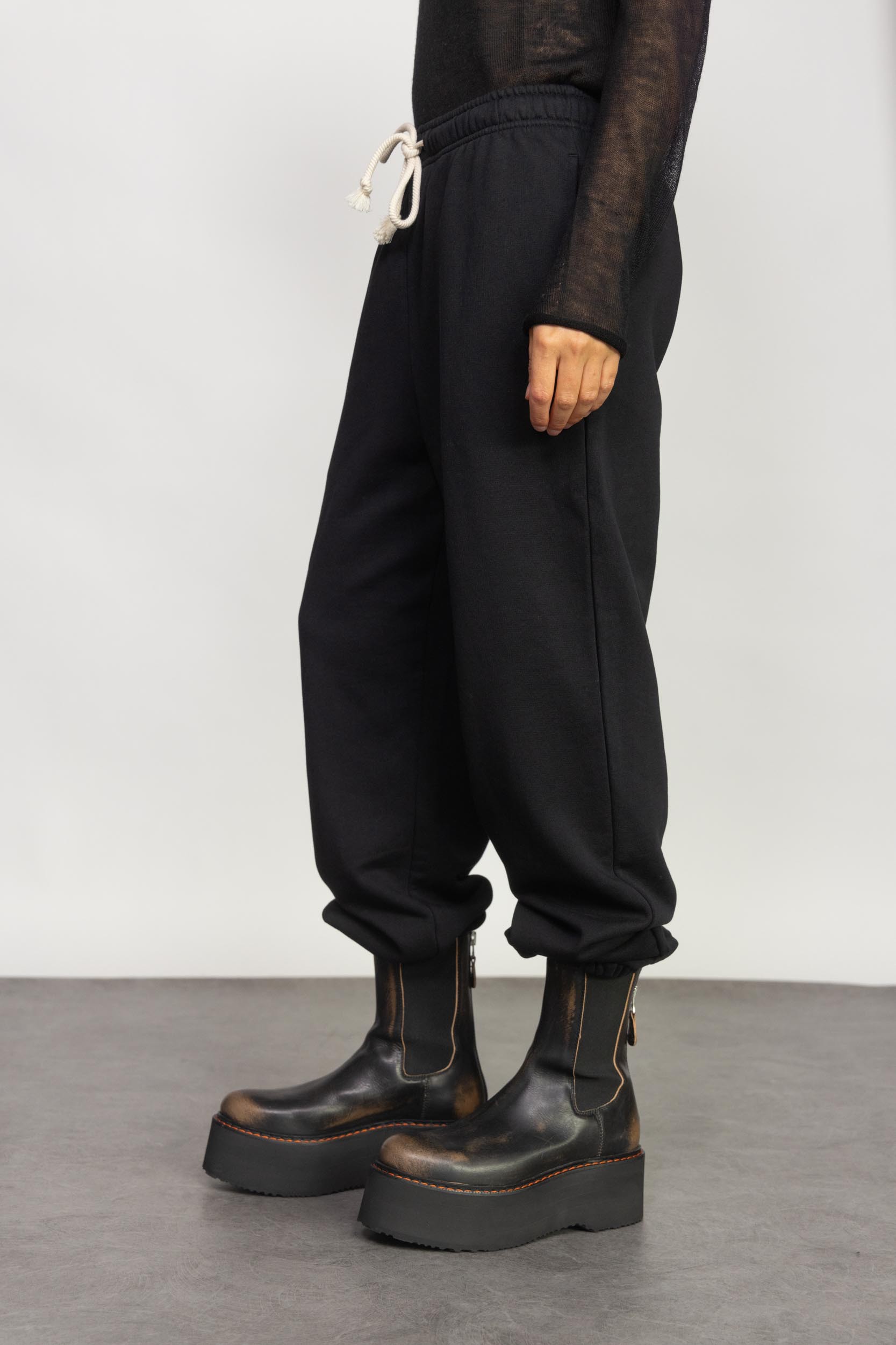 Pantalon de jogging en molleton noir signé Acne Studios comporte deux poches latérales et une poche arrière et est fabriqué en coton issu de l'agriculture biologique. Coupe régulière, taille et ourlet élastiqués avec cordon de serrage contrasté, complété par un patch logo.