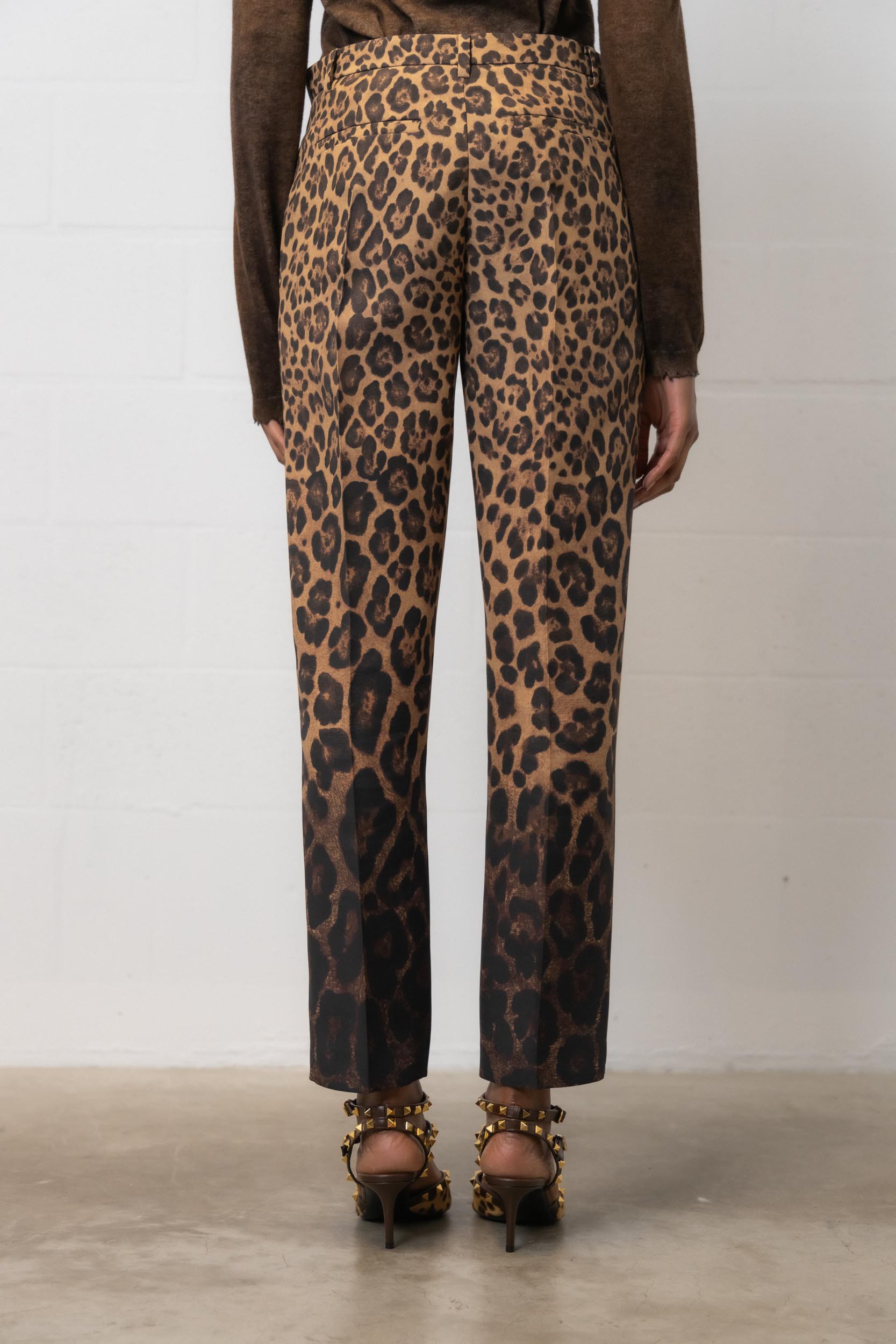 Ce pantalon en crêpe imprimé léopard est signé Valentino. Il présente une coupe droite et est imprimé en léopard dégradé.
