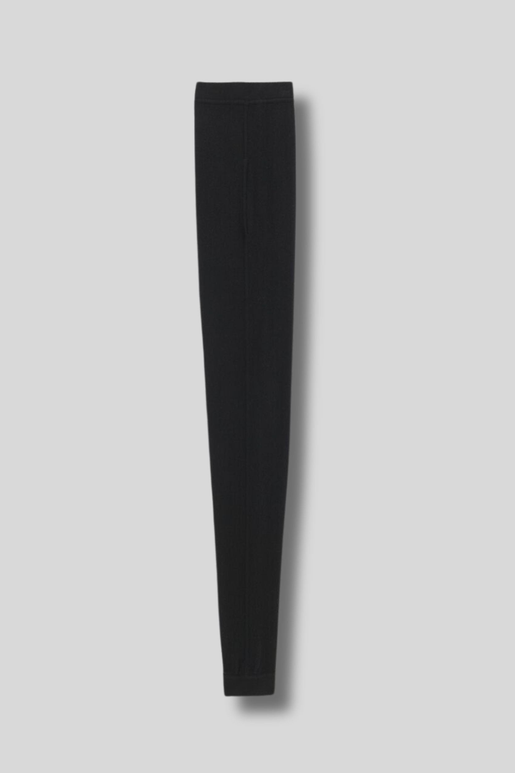 Ce pantalon legging noir est signé Saint Laurent. Il est réalisé en cachemire et présente une coupe ajustée, des poches latérales dissimulées et une taille élastique.