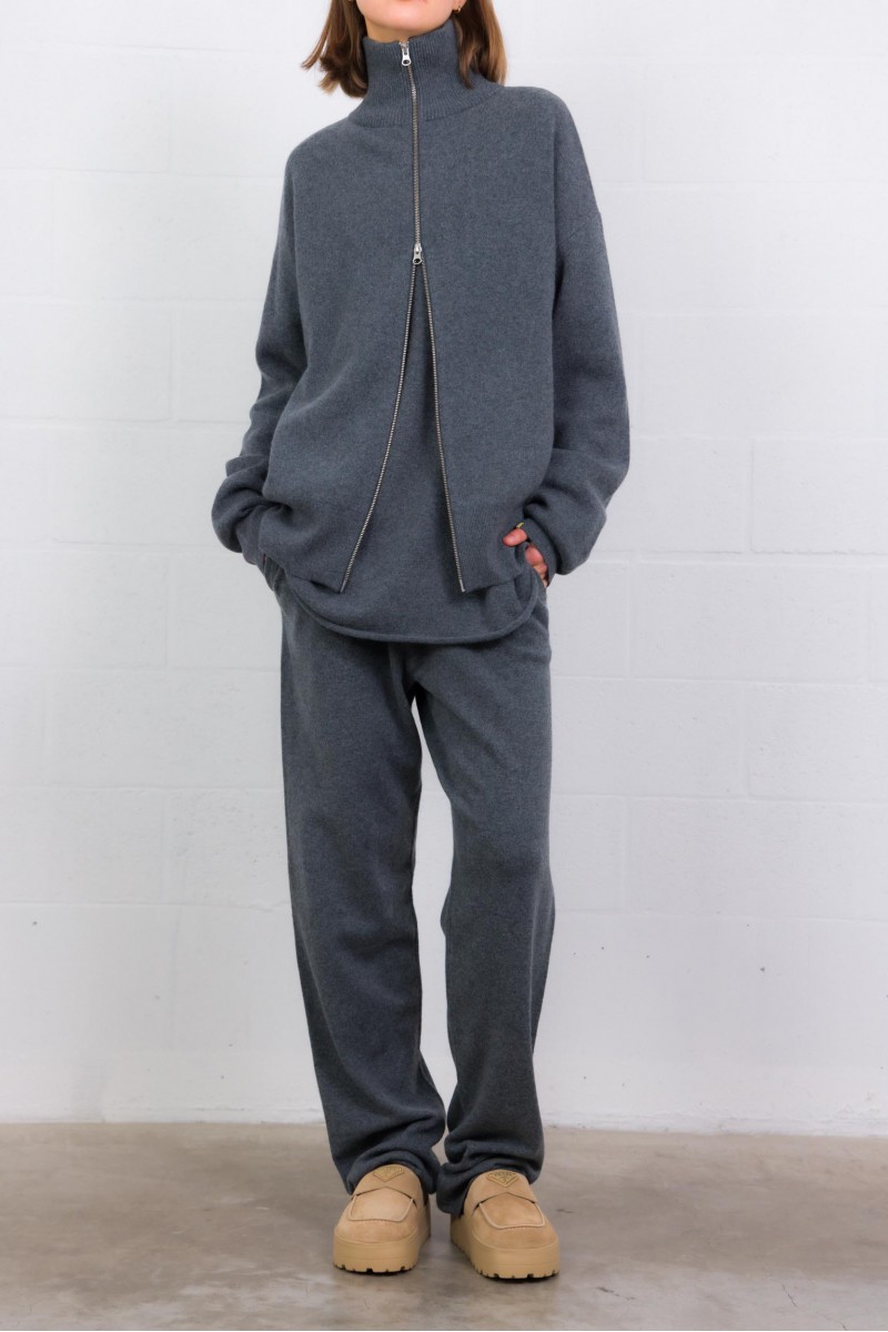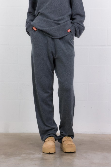 Ce pantalon stretch Rush Felt en cachemire gris est signé **Extreme Cashmere**. Confortable et raffiné, il est doté d’une taille élastiquée avec cordon de serrage, de poches latérales et d’une poche arrière. Sa particularité réside dans son ourlet à bords francs, qui permet d’ajuster facilement la longueur : il peut être coupé aux ciseaux à tissu pour un tombé sur mesure.