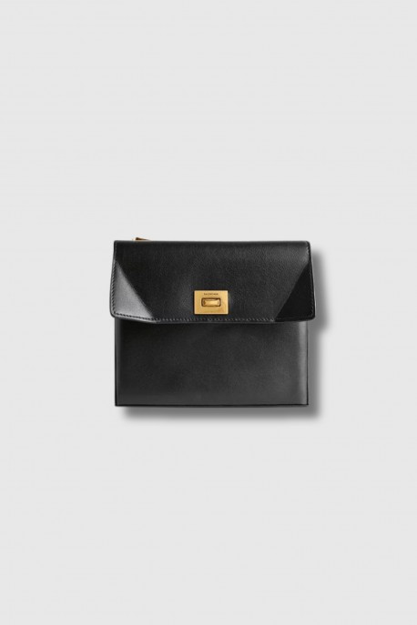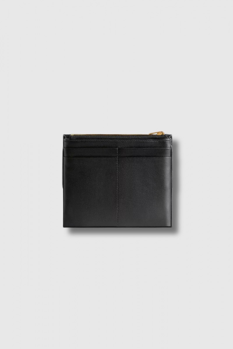 Ce petit portefeuille Rodeo en cuir de veau noir lisse signé Balenciaga associe élégance et praticité. Son fermoir en laiton vieilli doré gravé du logo révèle un compartiment principal avec poche zippée pour la monnaie. À l’arrière, quatre fentes cartes complètent ce format compact et raffiné.
