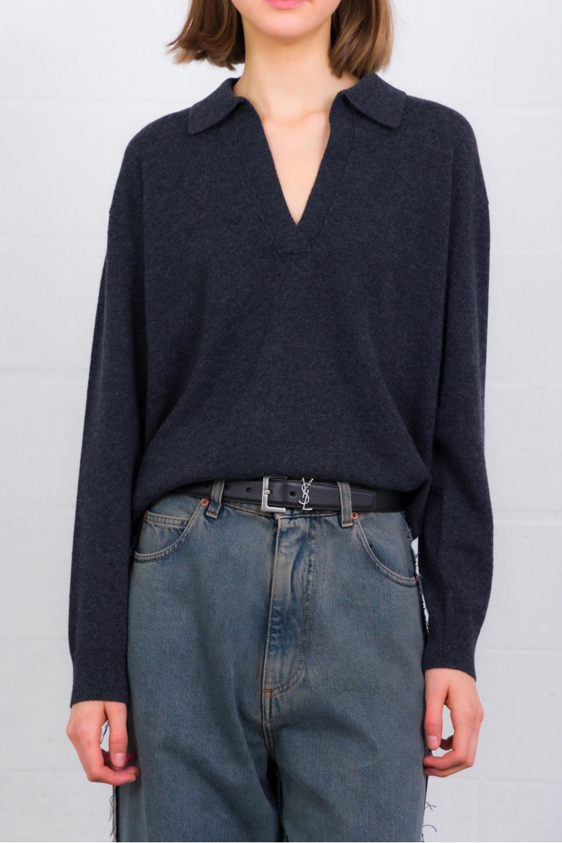 Ce polo à manches longues en cachemire gris anthracite est signé Majestic Filatures. Il présente un col en V avec revers polo, une coupe droite et des emmanchures descendues pour un confort optimal. Facile à enfiler, il se distingue par ses manches longues et ses finitions en bords-côtes. Confectionné en 100 % cachemire, ce modèle uni allie élégance et douceur.