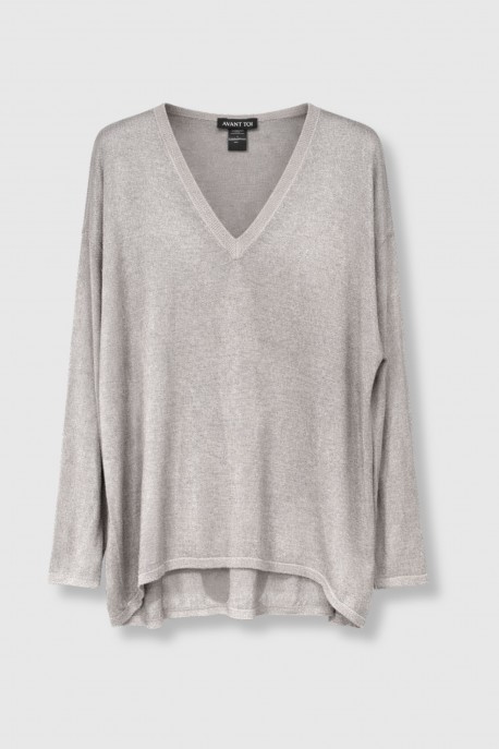 Ce pull laminé en soie et cachemire rose pâle signé Avant Toi allie luxe et confort avec élégance. Sa texture délicate et légèrement brillante apporte un effet lumineux subtil, tandis que le col V plongeant souligne la féminité de la silhouette. Les manches longues et la coupe ample garantissent aisance et confort, faisant de ce pull une pièce sophistiquée et versatile, idéale à porter seule ou superposée pour un look raffiné et contemporain.