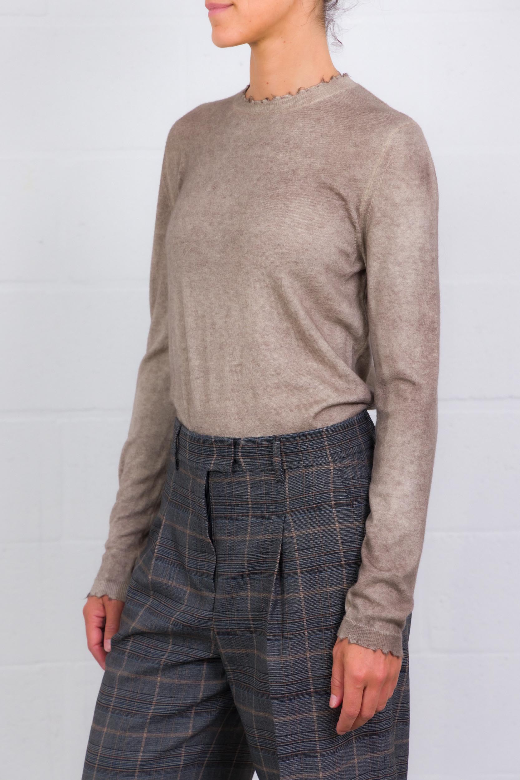 Pull iconique col rond taupe