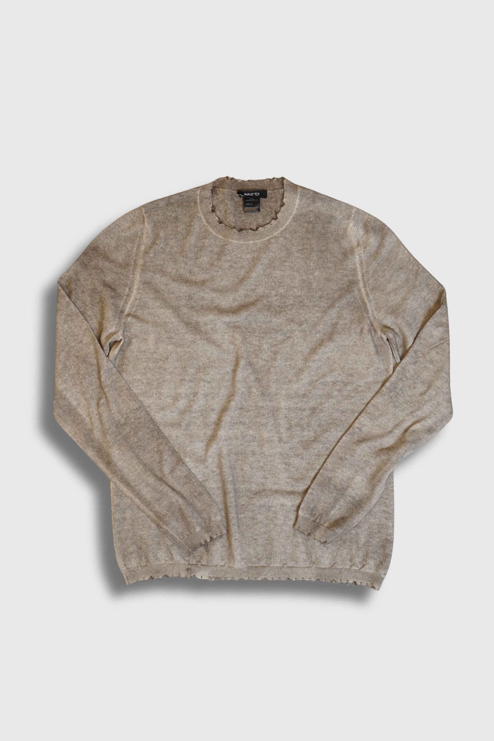 D’une sobriété raffinée, ce pull taupe signé Avant Toi séduit par sa coupe épurée rehaussée de finitions délicatement effilées au col, aux poignets et à la base. Confectionné dans une maille fine de qualité supérieure, il incarne le savoir-faire artisanal et l’élégance discrète propres à la Maison. Intemporel et polyvalent, il offre une allure faussement simple, pensée pour traverser les saisons avec style.