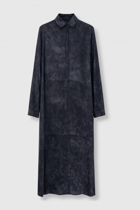 Robe chemise marbrée en soie noir