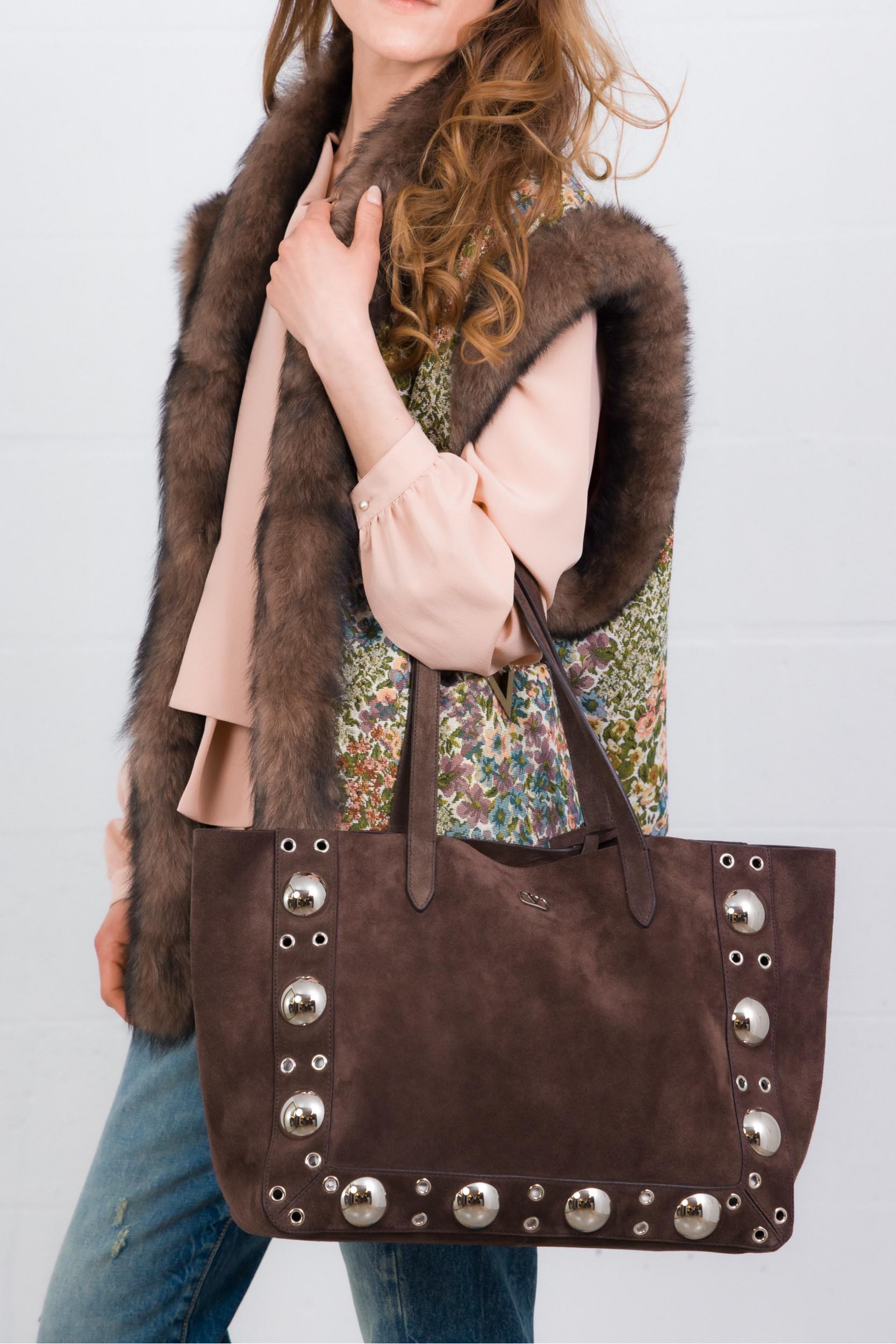 Le sac Antibes en daim camel est signé Valentino Garavani. Ce cabas Nellcôte en daim se distingue par sa bordure ornée de ball studs et de rivets emblématiques. Il se porte à la main ou à l’épaule grâce à ses anses. Il est doté d’un petit ornement métallique VLogo Signature, d’une pochette intérieure amovible et de pièces en métal à finition palladium.