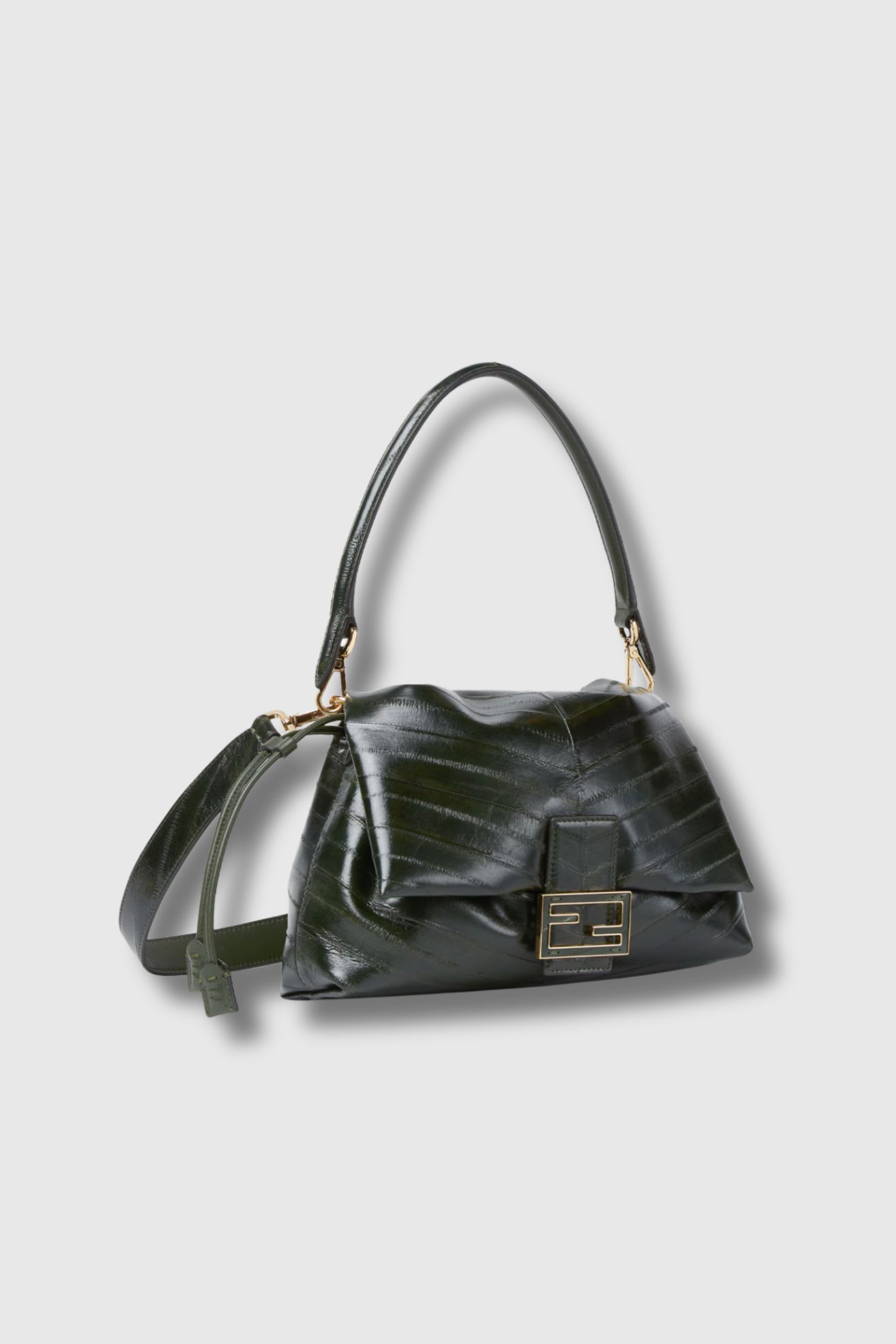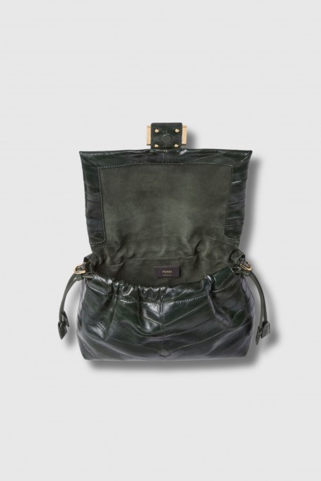Sac Mamma Baguette en cuir de myxine tressé vert forêt
