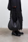 Ce sac Hobo en cuir de veau grainé noir signé Courrèges séduit par son design épuré et contemporain. Confectionné dans un cuir non doublé à la texture naturelle, il se ferme grâce à un lien agrémenté d’un bijou métallique AC emblématique. Il intègre une pochette en cuir amovible pour plus de fonctionnalité, tandis que le logo « Courrèges » embossé à l’avant apporte une touche subtile de signature. Son anse ajustable, pouvant se dissimuler dans une fente latérale, offre un porté modulable et élégant.