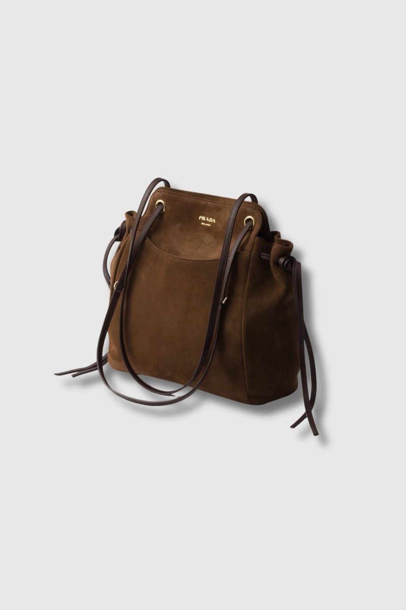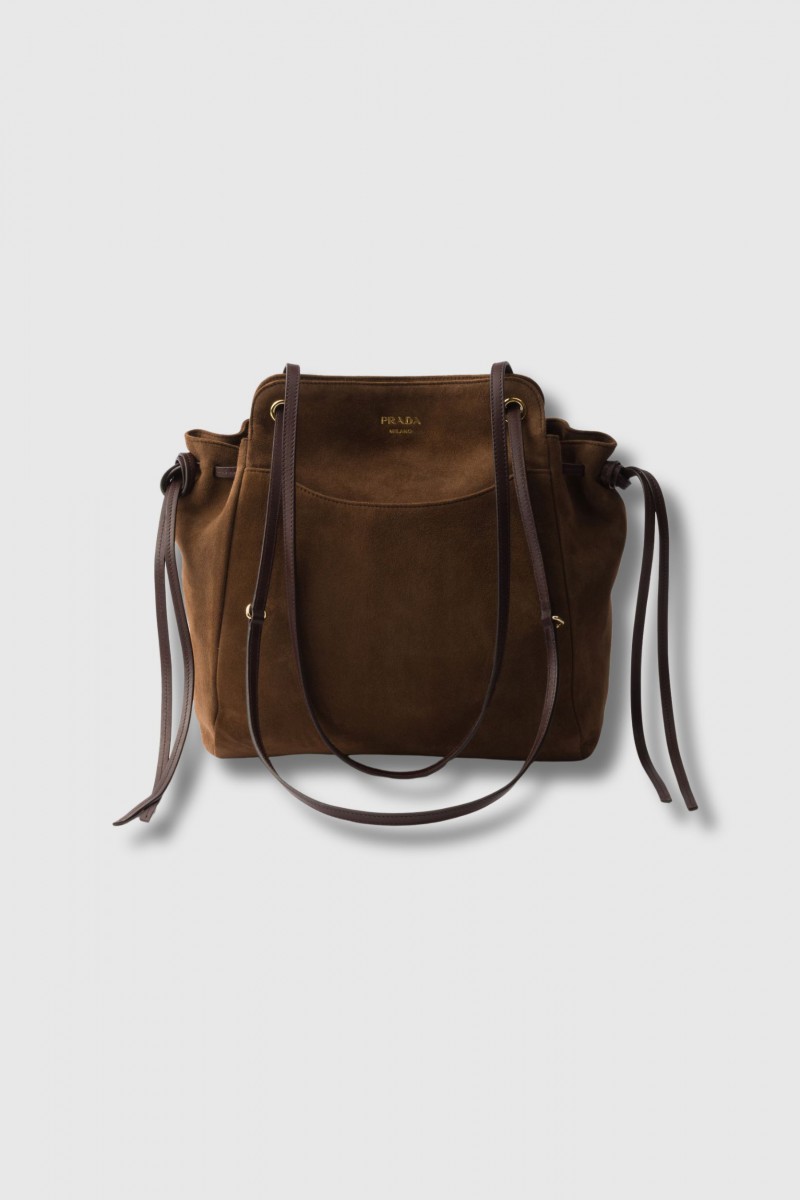 Ce sac fourre-tout en daim marron signé Prada allie simplicité et sophistication. Confectionné en veau velours, il offre une structure spacieuse idéale pour le quotidien. Ses poignées coulissantes permettent de varier le porté et de transformer l’apparence du sac selon les envies. Les détails d’archive et le logo lettres apportent une touche emblématique, combinant élégance contemporaine et signature iconique Prada.