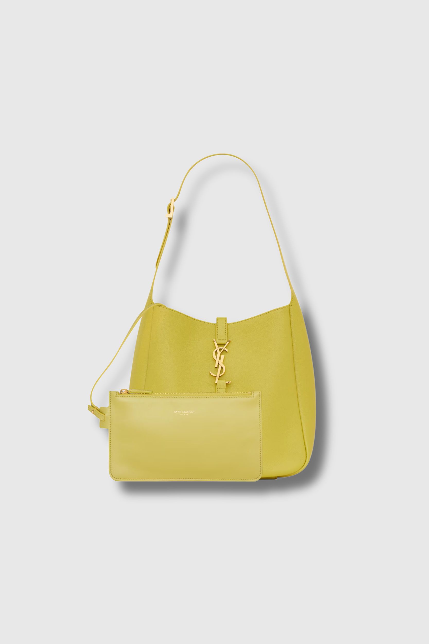 Le Sac Le 5 à 7 Small en cuir grainé citron signé Saint Laurent revisite l’iconique 5 à 7 dans une version souple et raffinée. Confectionné en cuir finement grainé, il est doublé de suède ton sur ton, offrant une sensation luxueuse et naturelle. Spacieux et fonctionnel, il est orné d’une patte de cuir signature Cassandre ainsi que d’une pochette intérieure zippée amovible. Son anse réglable permet un porté épaule personnalisé. Ce modèle se distingue par sa doublure en suède, sa bijouterie en laiton light bronze et son élégance intemporelle.