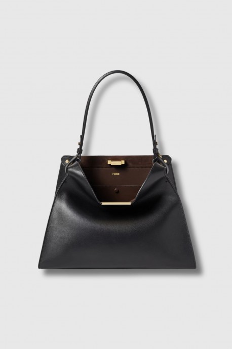 Ce sac Fendi Way en cuir noir est signé Fendi. Présenté lors du défilé Printemps/Été 2026, il se distingue par sa silhouette souple, sa grande capacité et sa fermeture iconique à tourniquet. Confectionné en cuir de veau semi-brillant, il est doté d’un intérieur doublé en daim chocolat, avec une poche en cuir ton sur ton. Les finitions en métal doré et le petit anneau pour bijou ajoutent une touche raffinée. Sa poignée longue ajustable permet un porté main ou épaule, idéal pour transporter les essentiels du quotidien.