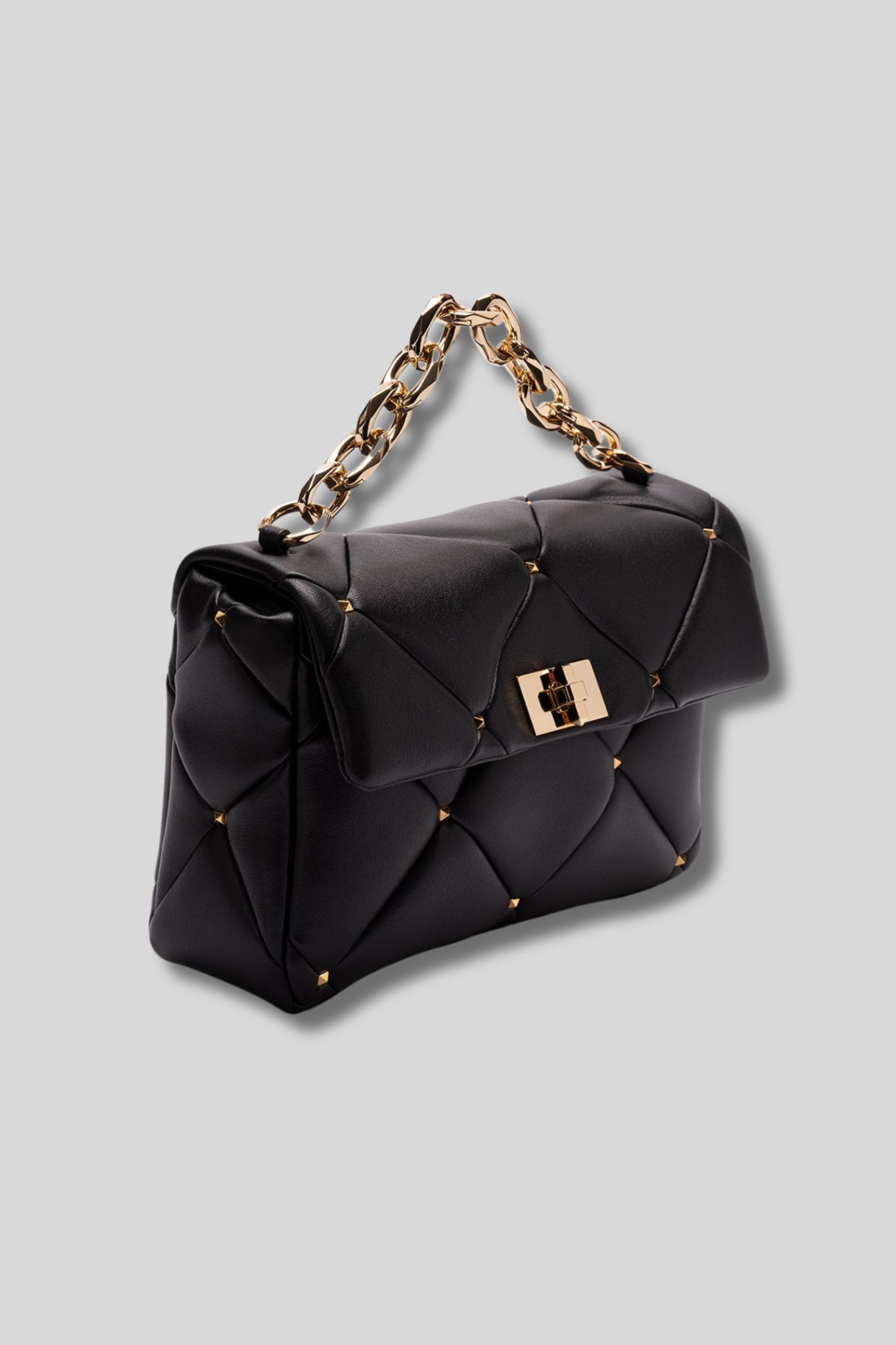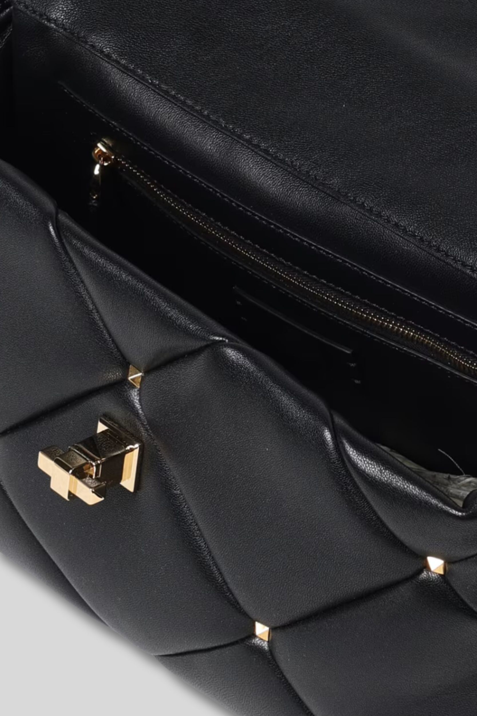 Ce sac Roman Stud noir à chaîne dorée est signé Valentino Garavani. Celui-ci présente une anse dorée et est accompagné d'une bandoulière en cuir noire ajustable pour le porter en cross body. Ce produit possède un compartiment principal et une poche intérieur zippée.