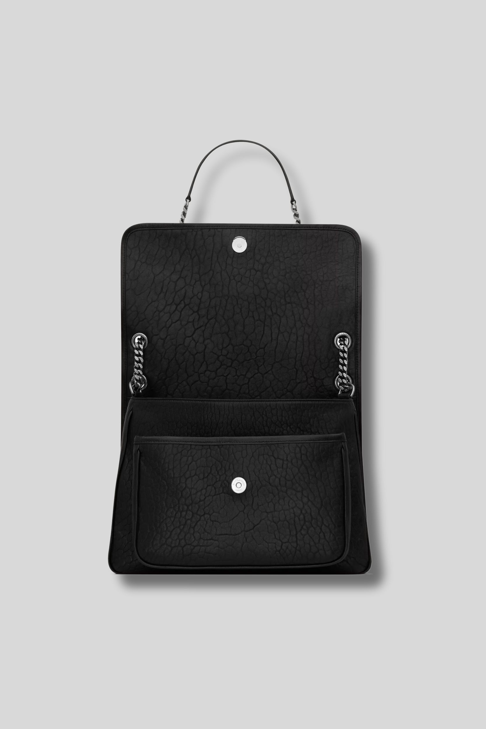 Ce grand sac Niki en cuir finement grainé noir, signé Saint Laurent, se distingue par son design spacieux et fonctionnel. Il offre un grand compartiment principal ainsi qu’une poche plaquée à l’arrière pour plus de praticité.