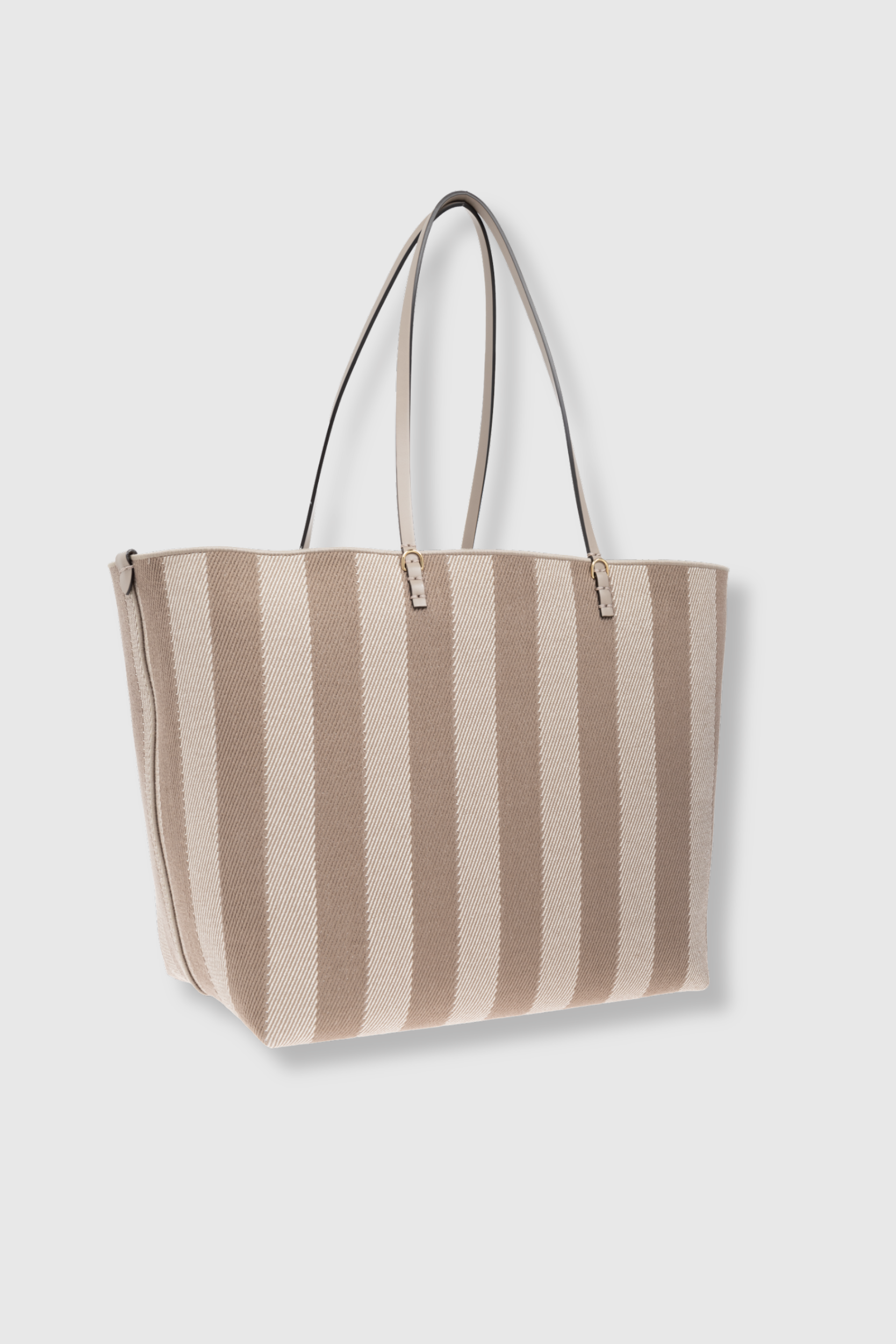 Sac shopping en tissu à rayures Pequin et FF taupe