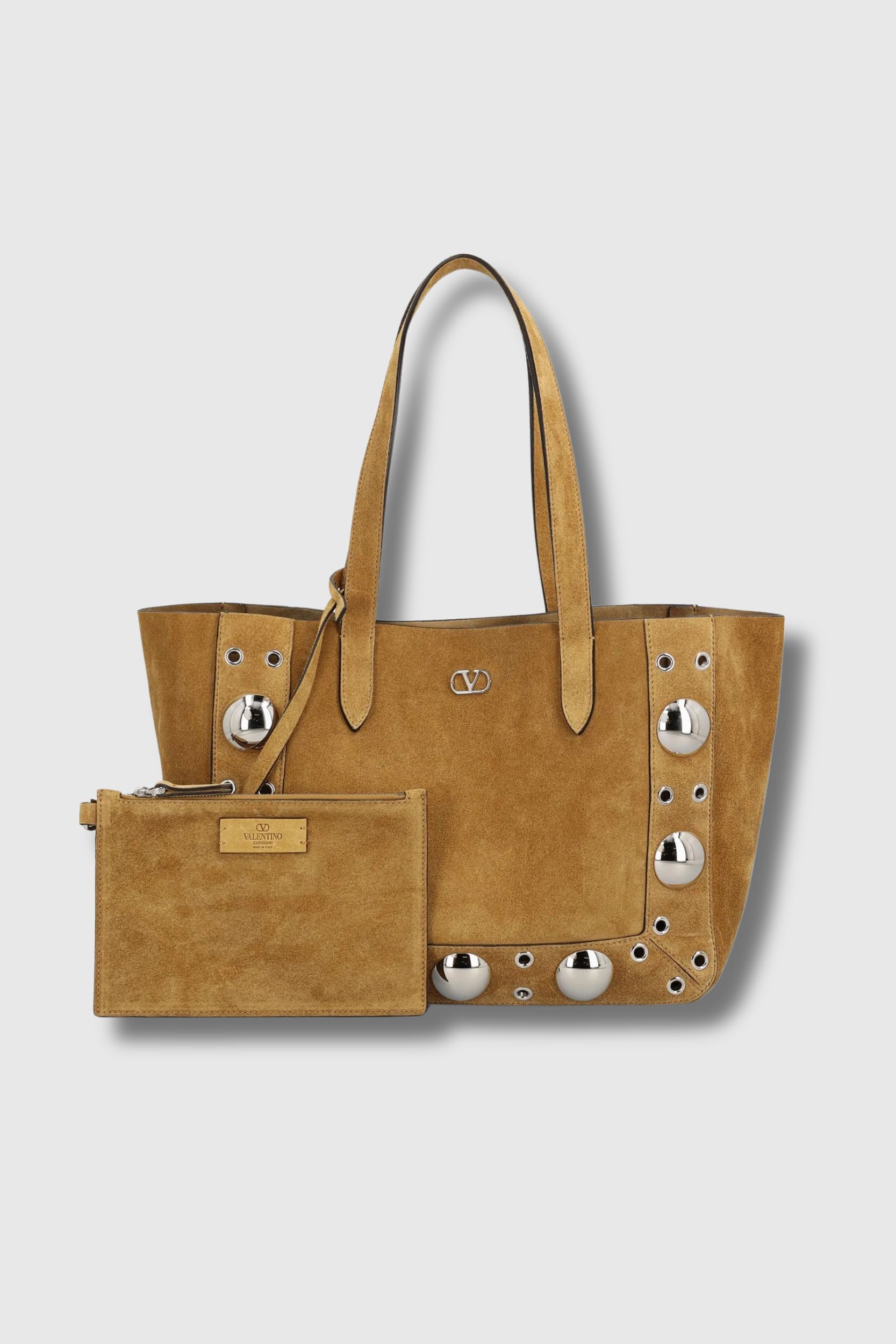 Ce large sac Nellcote en daim camel signé Valentino Garavani séduit par sa silhouette structurée et son design épuré, pensé pour conjuguer élégance et fonctionnalité au quotidien. Confectionné en daim de veau souple, il est doté de deux anses pour un porté main ou bras, d’une pochette intérieure amovible et d’ornements de studs sphériques et rivets appliqués à l’avant et à l’arrière. Le détail métallique VLogo Signature apporte une touche graphique iconique à cet accessoire à l’allure affirmée, fabriqué en Italie dans un esprit résolument sophistiqué.